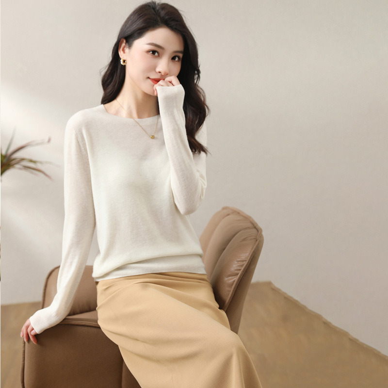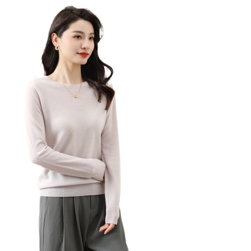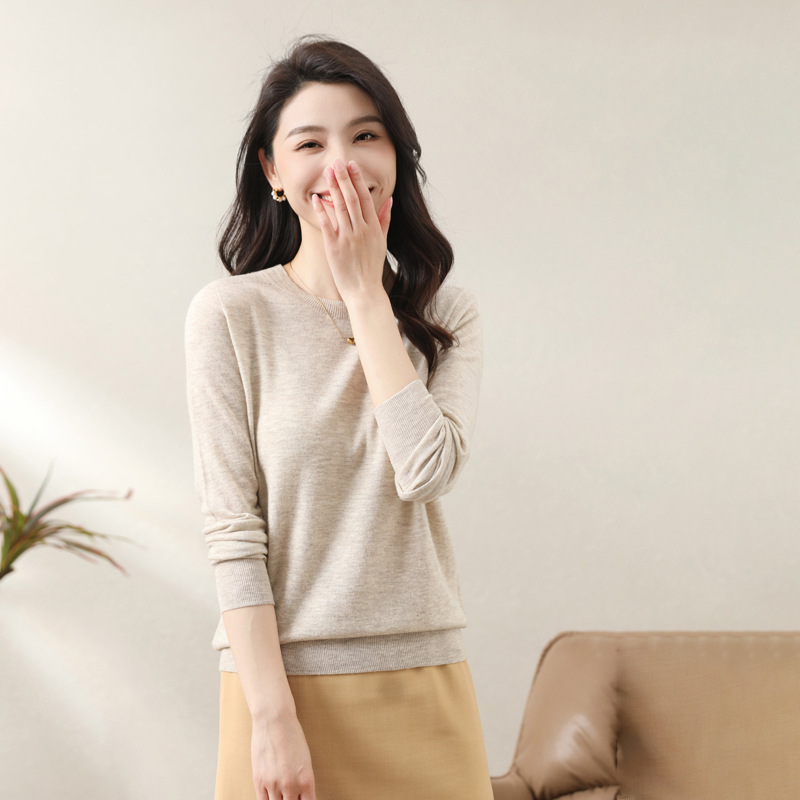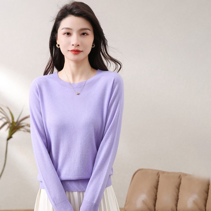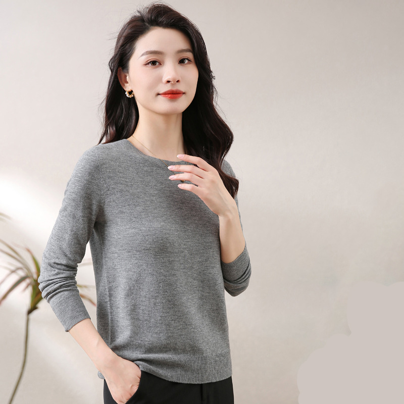 Women's woolen sweater low round neck thin solid color loose bottoming shirt fashionable all-match sweater pullover women's sweater