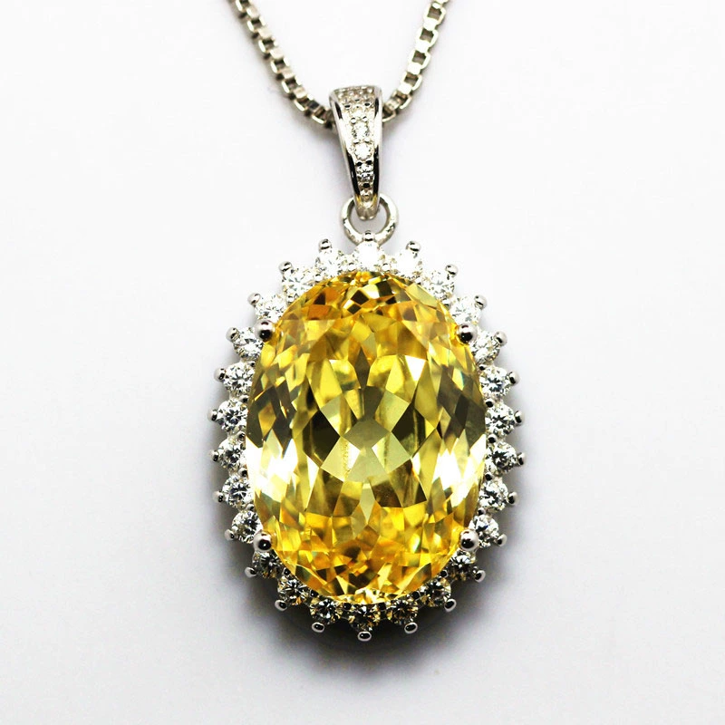 | nameOriginal | Women's yellow diamond pendant necklace Swiss diamond oval sterling silver inlaid jewelry Korean versatile single birthday gift |