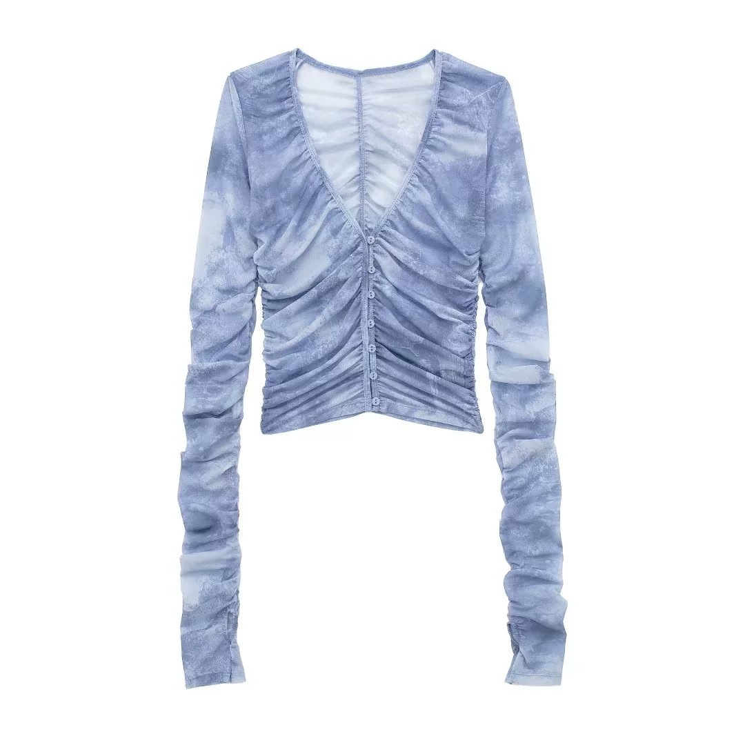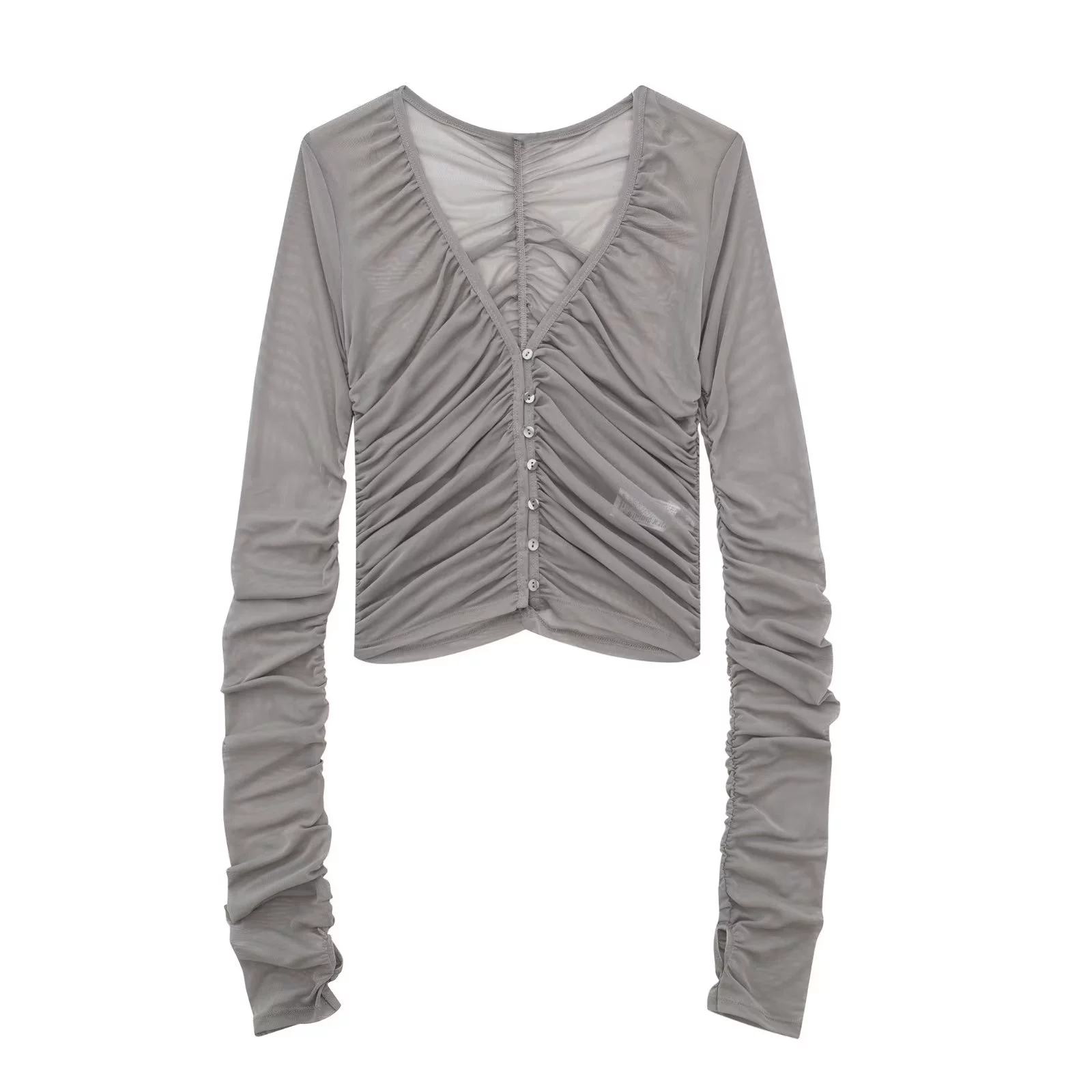 Women's YUXI Slim Fit Pleated Long Sleeve Top