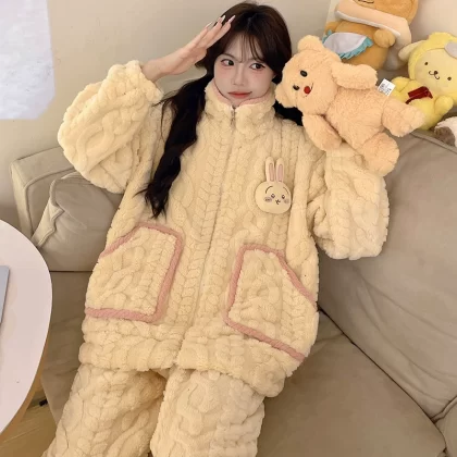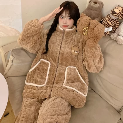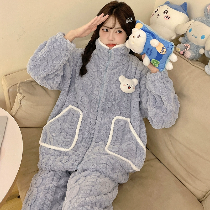 | nameOriginal | Women's Zippered Thickened Cute Cartoon Flannel Pajamas |