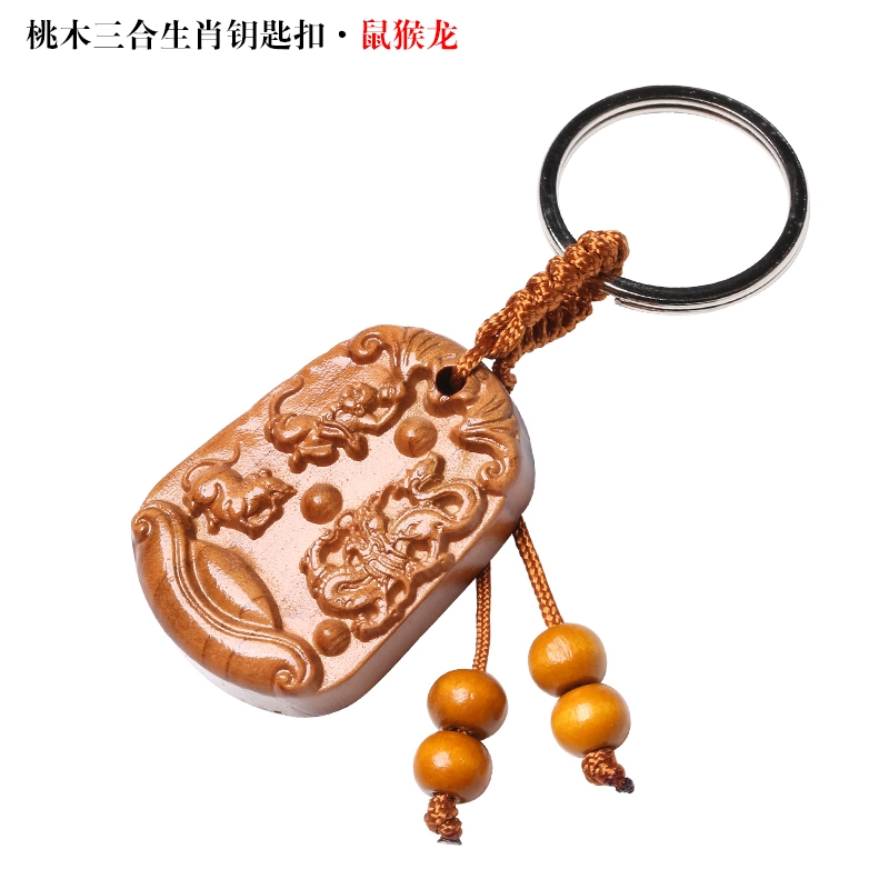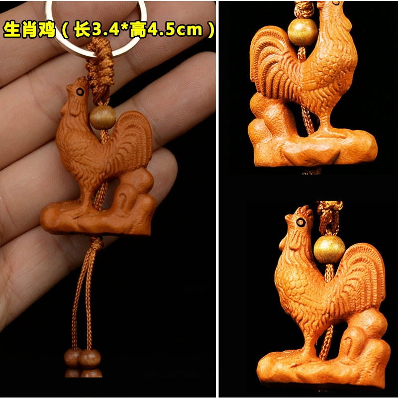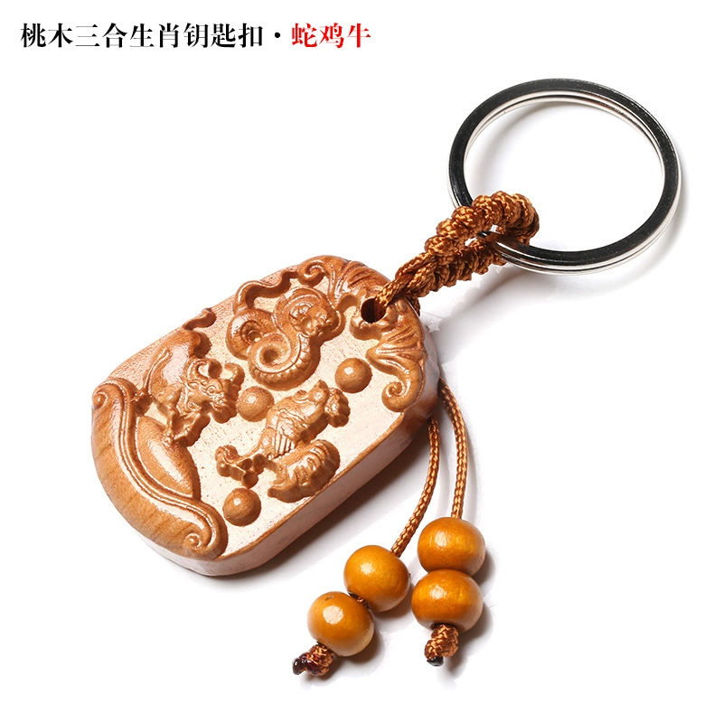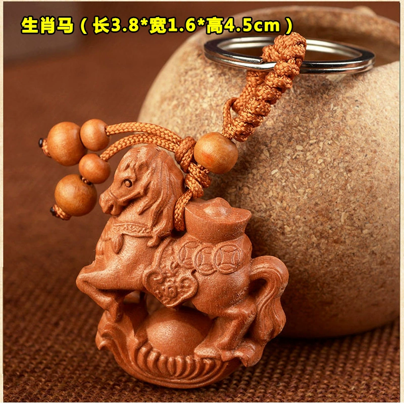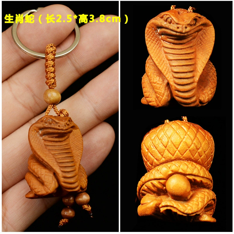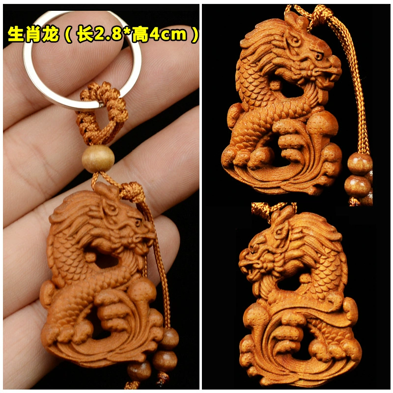 | nameOriginal | Wood carving dragon snake horse sheep monkey car keychain pendant |