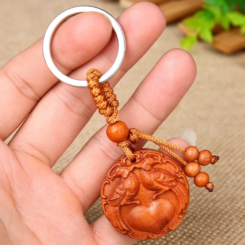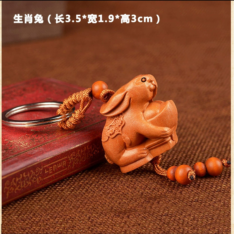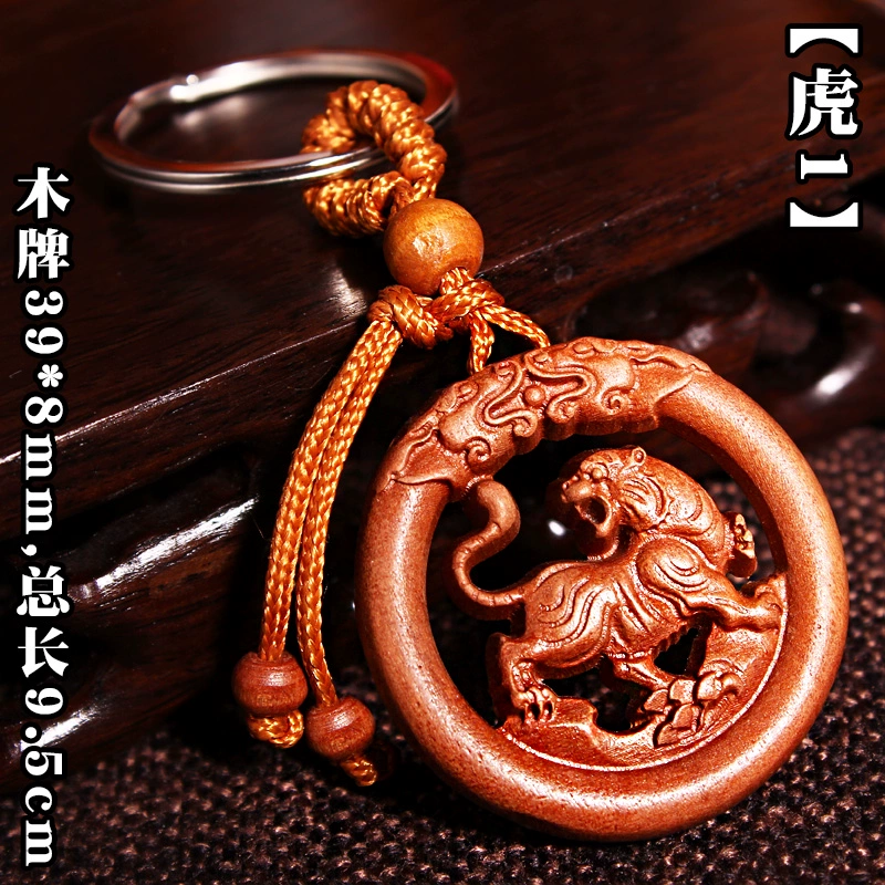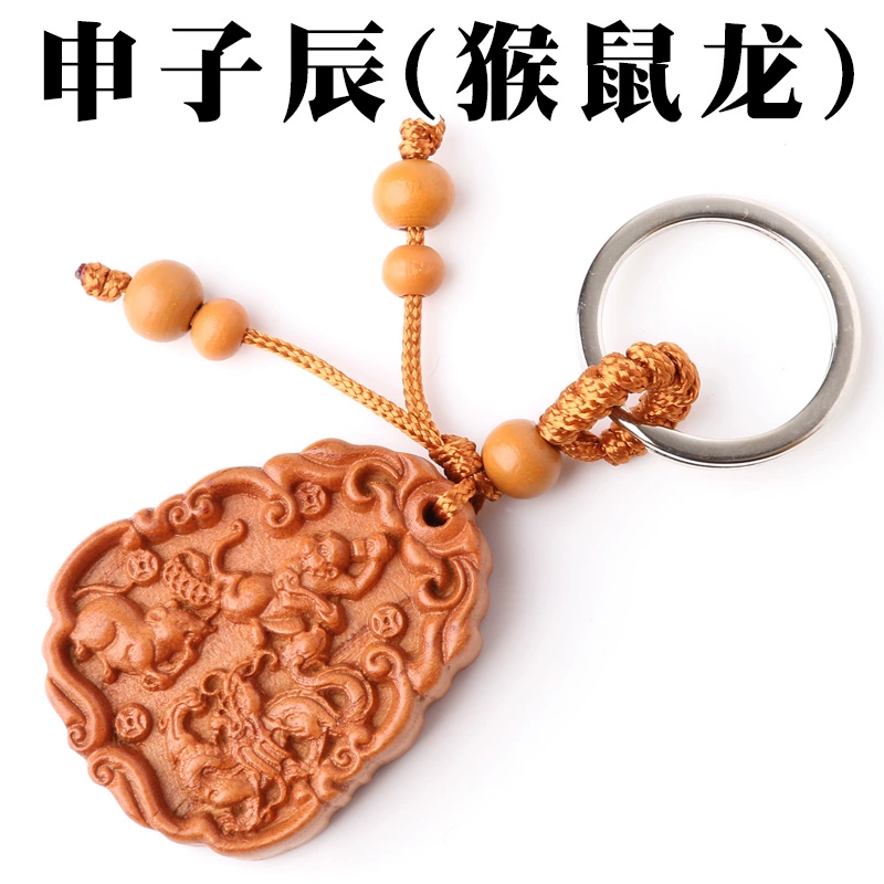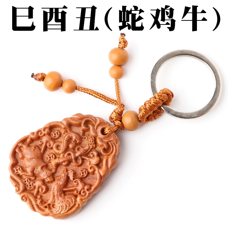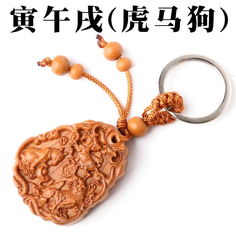 | nameOriginal | Wood carving dragon snake horse sheep monkey car keychain pendant |