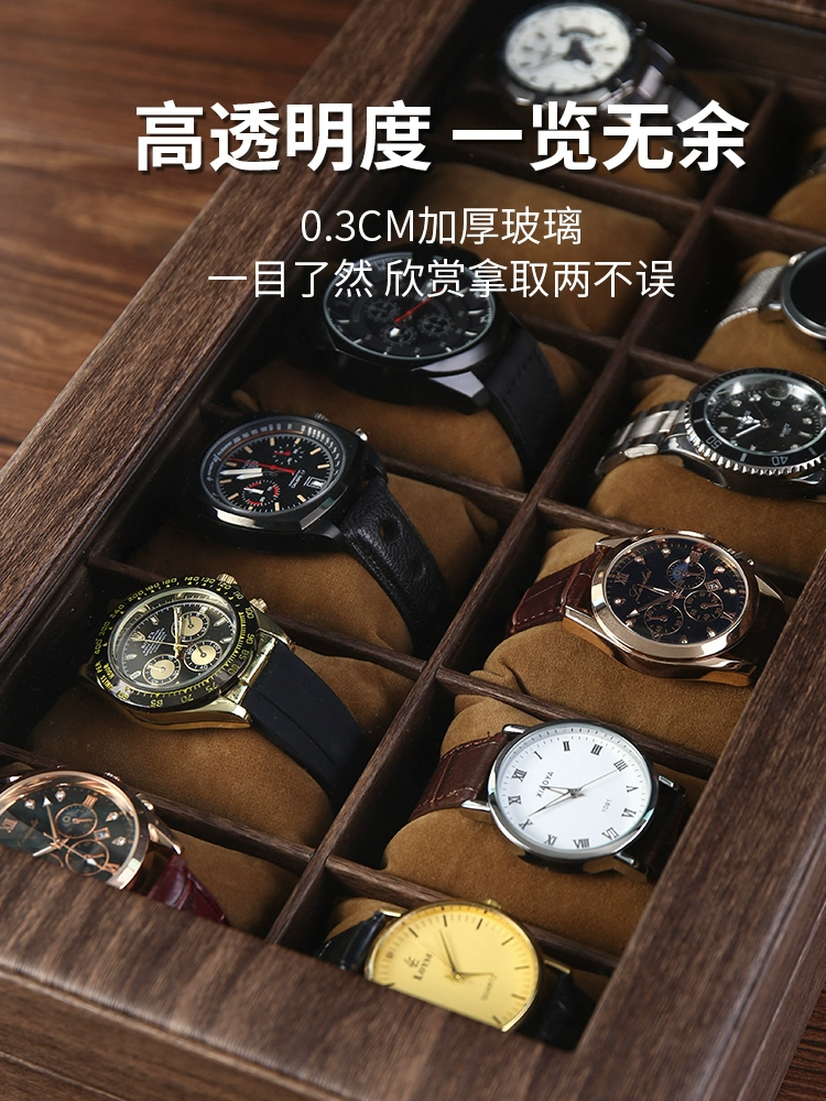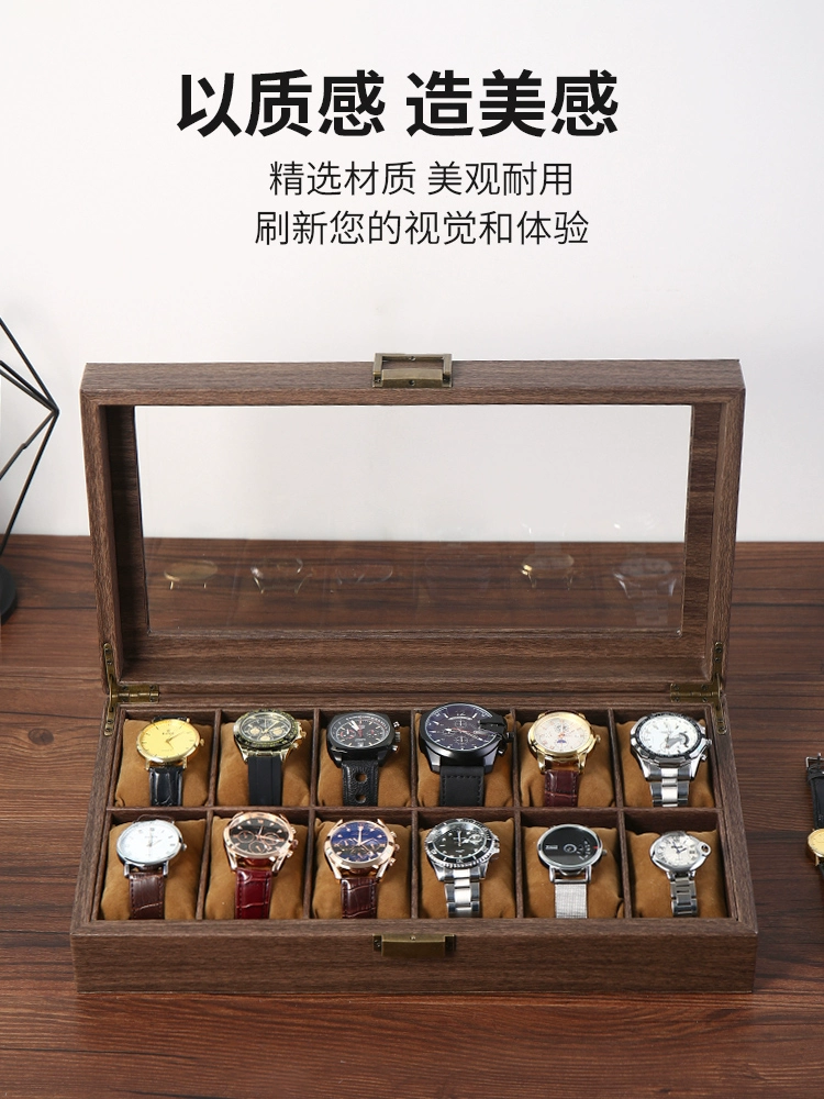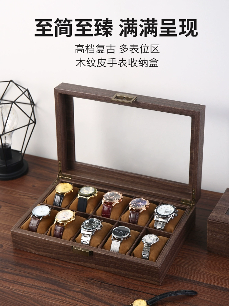 | nameOriginal | Wood grain leather watch box jewelry storage box glass skylight watch collection box bracelet watch high-end display box |