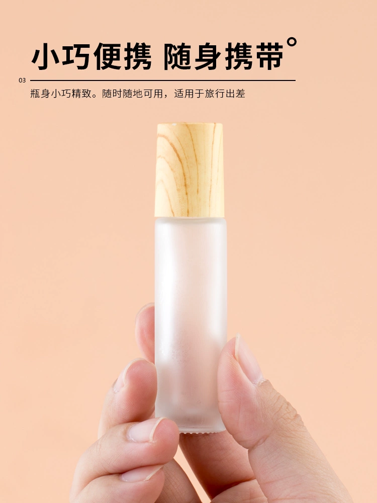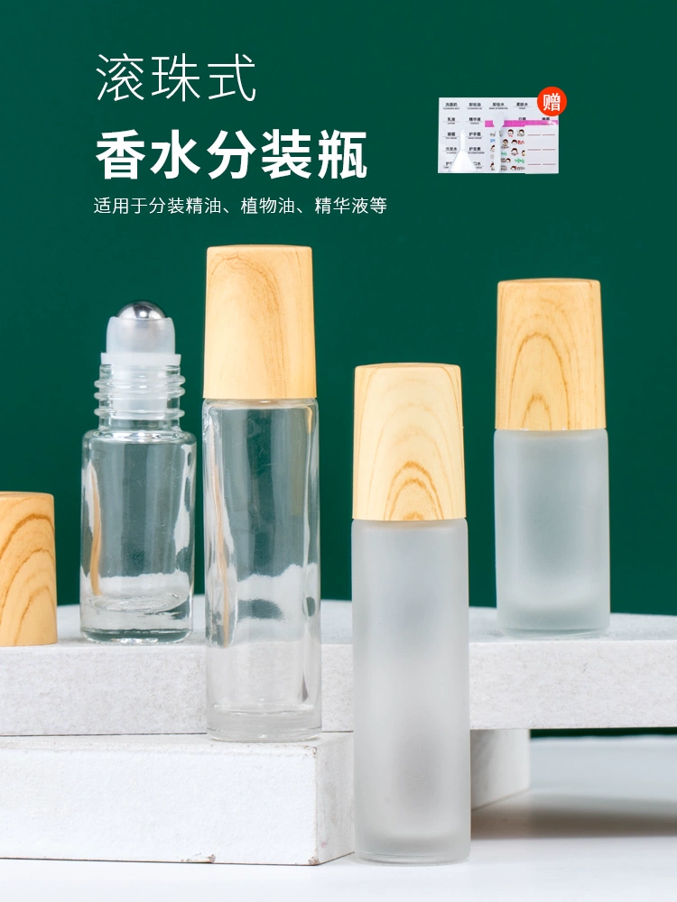 Wood grain steel ball rolling bottle essential oil bottle perfume roller ball bottle glass high-end small empty bottle portable massage