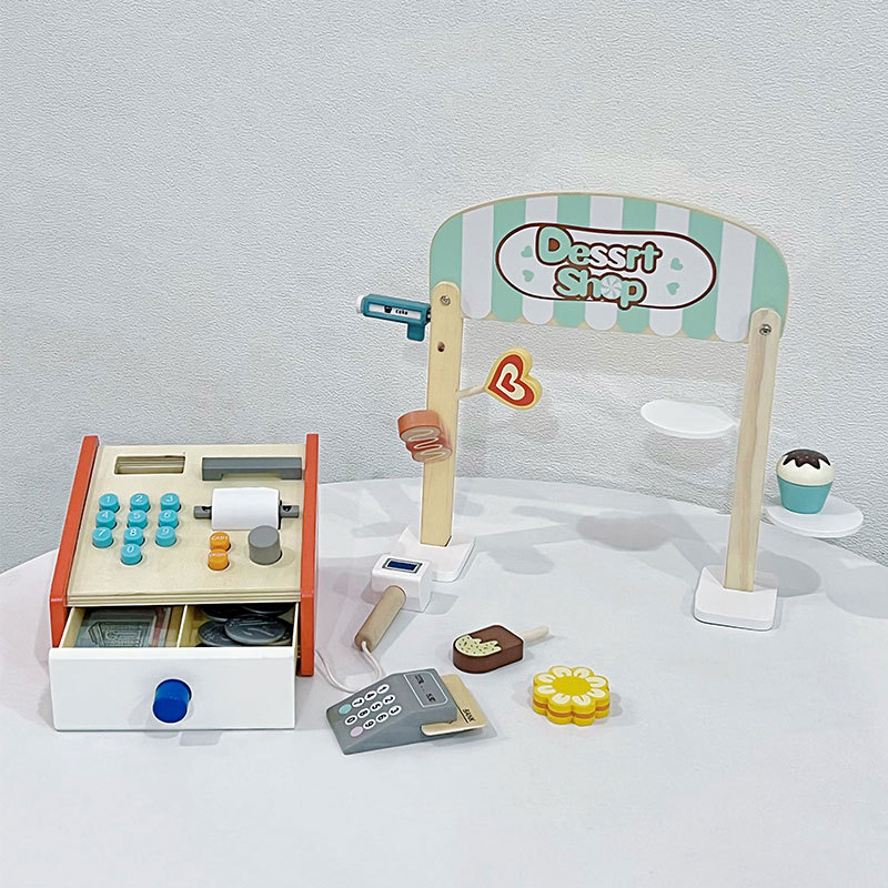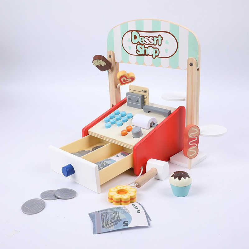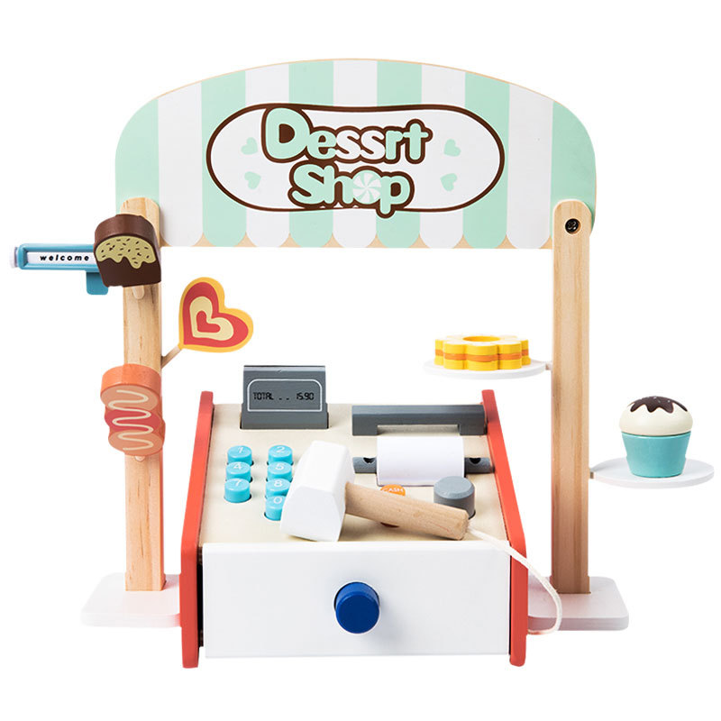 | nameOriginal | Wooden children's simulation cash register dessert shop play house toy cake biscuit popsicle cashier shop |