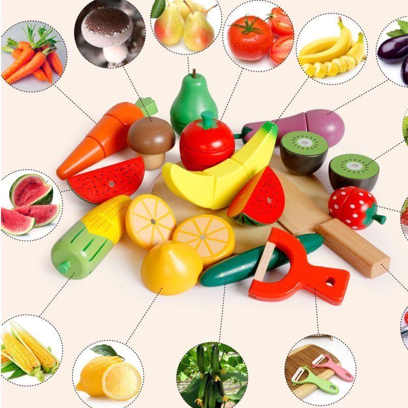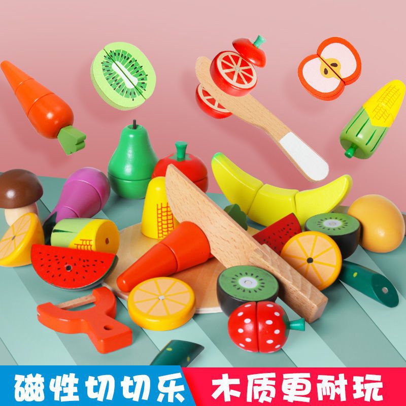 Wooden cut fruit toy children’s cut and cut music magnet vegetable cut baby fruit and vegetable kitchen boy suit simulation