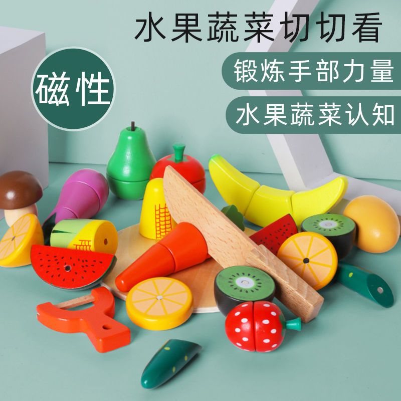 Wooden cut fruit toy children's cut and cut music magnet vegetable cut baby fruit and vegetable kitchen boy suit simulation