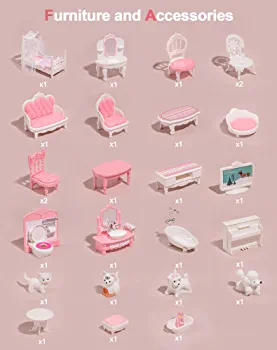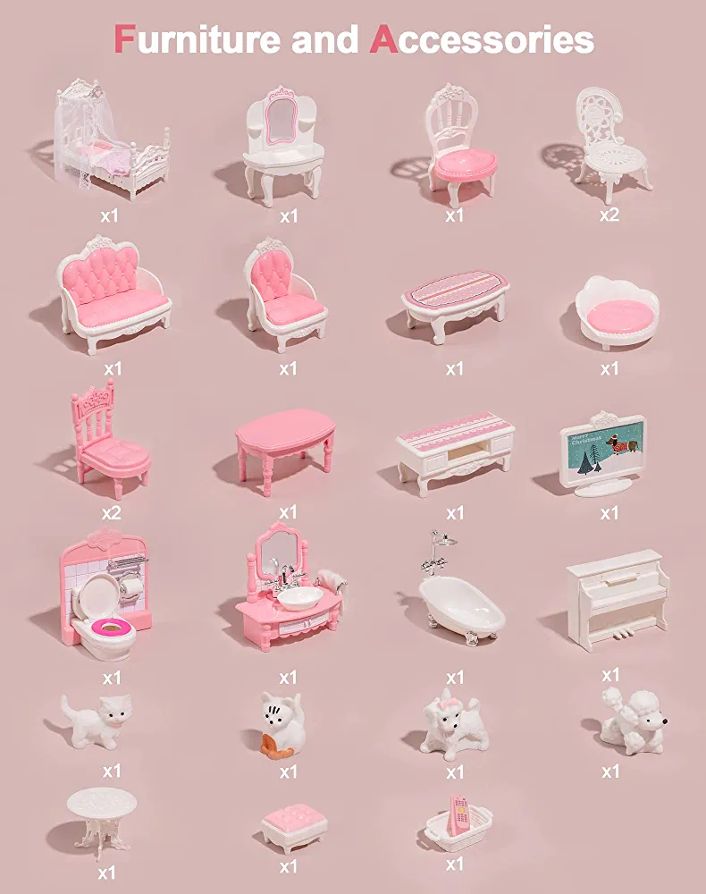 | descriptionOriginal | COMES WITH 24PCS FURNITURE: ROBUD wooden dollhouse includes kitchen, living room, bathroom, bedroom, flower room and balcony. Also comes with 24pcs plastic dollhouse furniture accessories including high simulation pet dogs and cats |