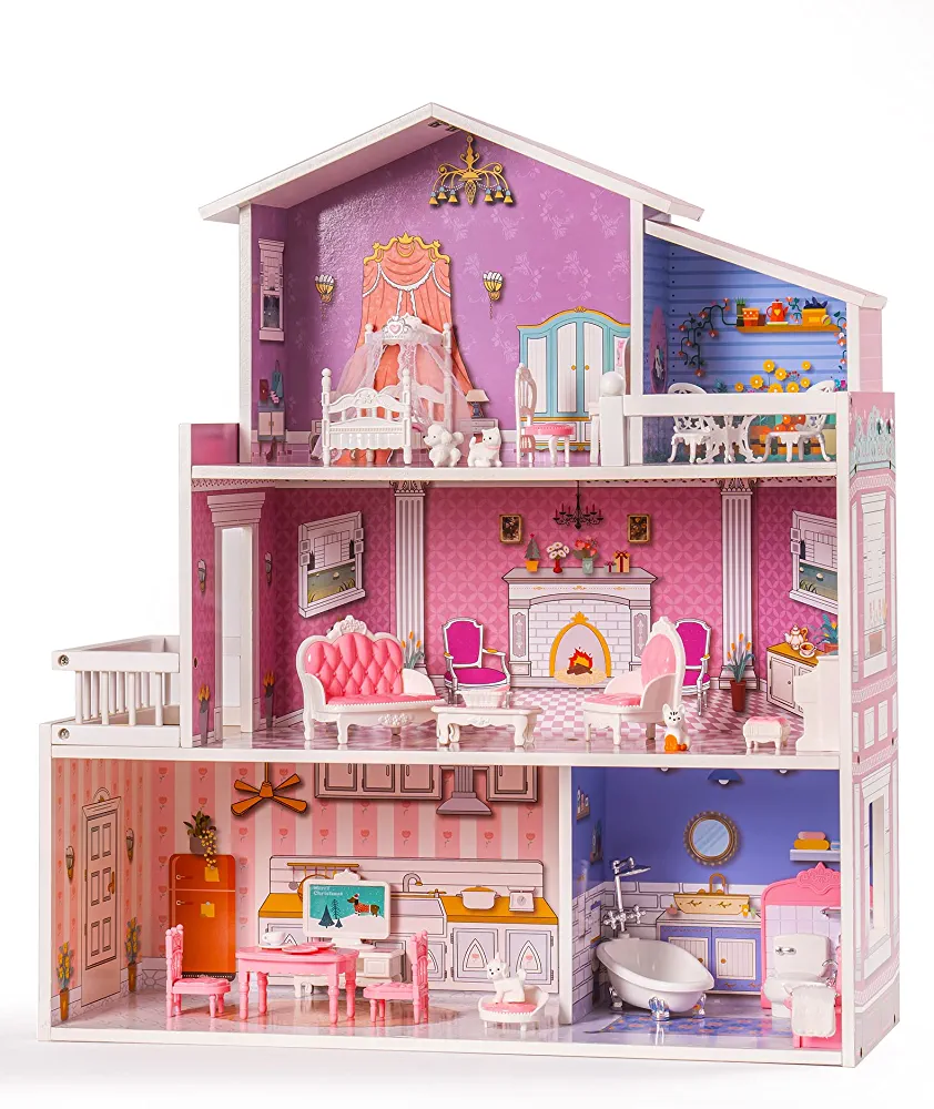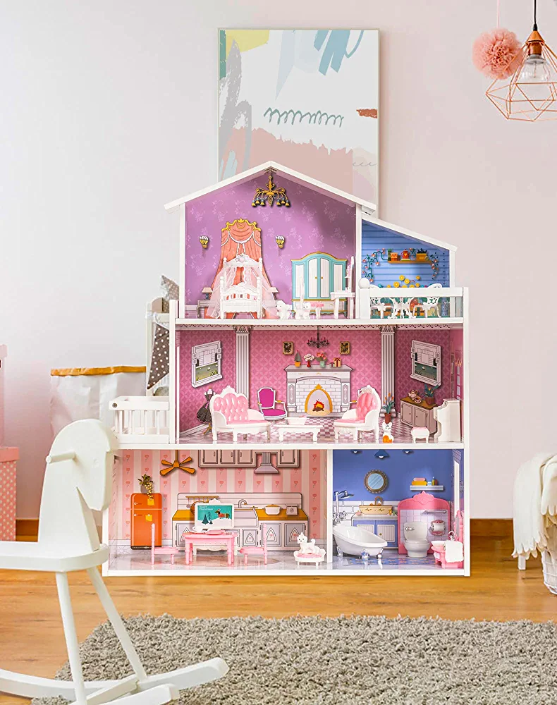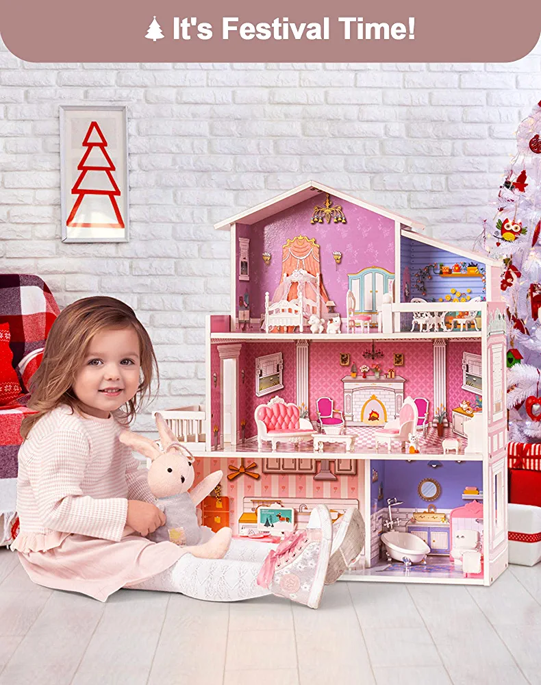 | nameOriginal | ROBUD Wooden Dollhouse for Kids Doll House with 24pcs Furniture Preschool Dollhouse Playset for Girls Toddlers Gift |