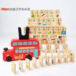 Wooden dominoes small train children’s educational early education Chinese character digital building blocks automatic delivery licensing toys
