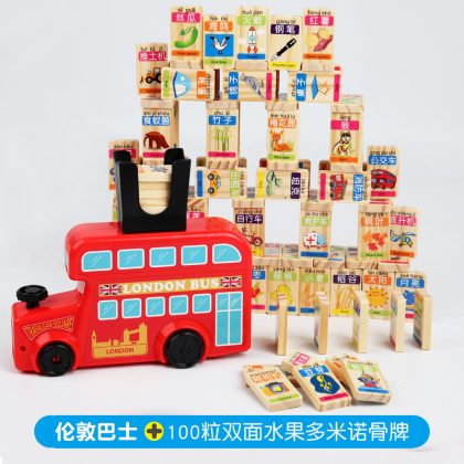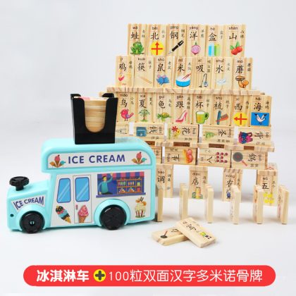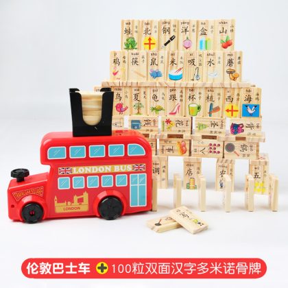 Wooden dominoes small train children’s educational early education Chinese character digital building blocks automatic delivery licensing toys