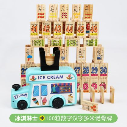 Wooden dominoes small train children's educational early education Chinese character digital building blocks automatic delivery licensing toys