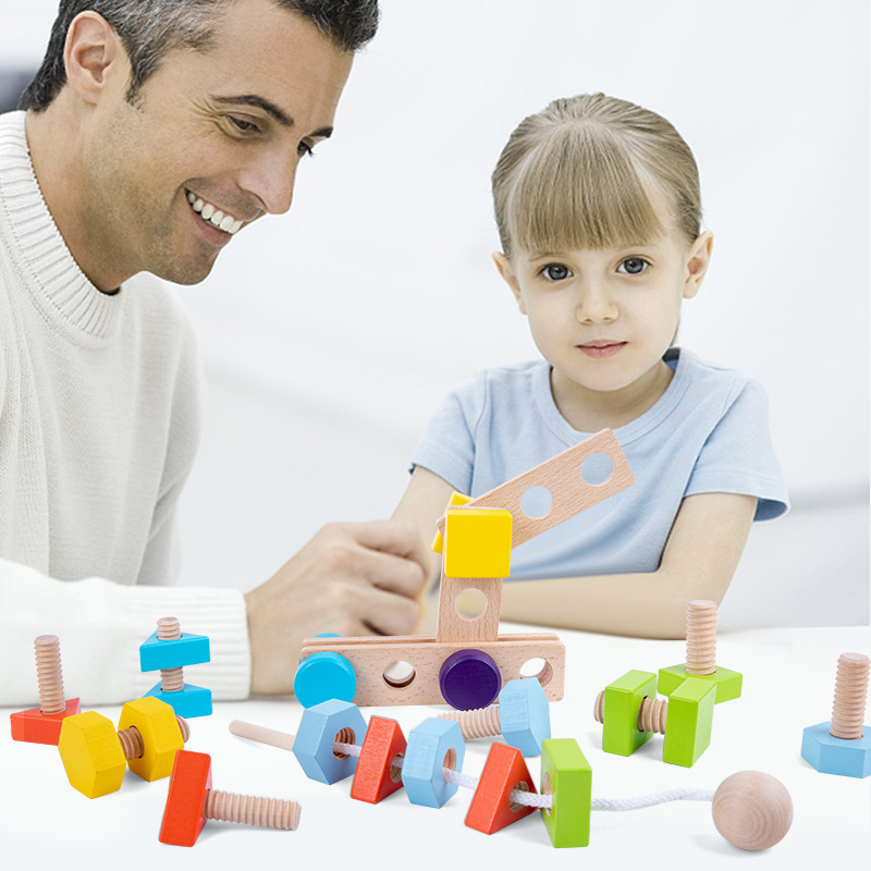 Wooden Nut Color Shape Matching Children's Early Education Educational Screwing Screw Assembly Assembly Variant Toys