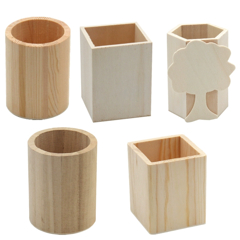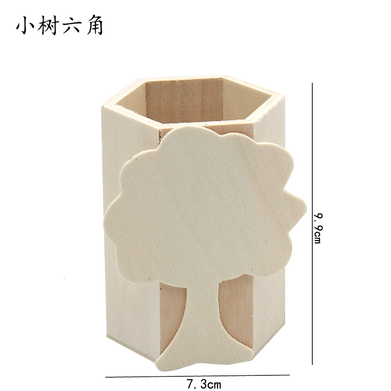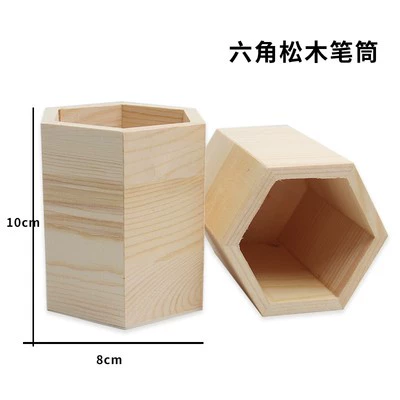 | nameOriginal | Wooden pen holder white pine paulownia round hexagonal square pen holder clay colored mud snowflake mud DIY handmade white mold |