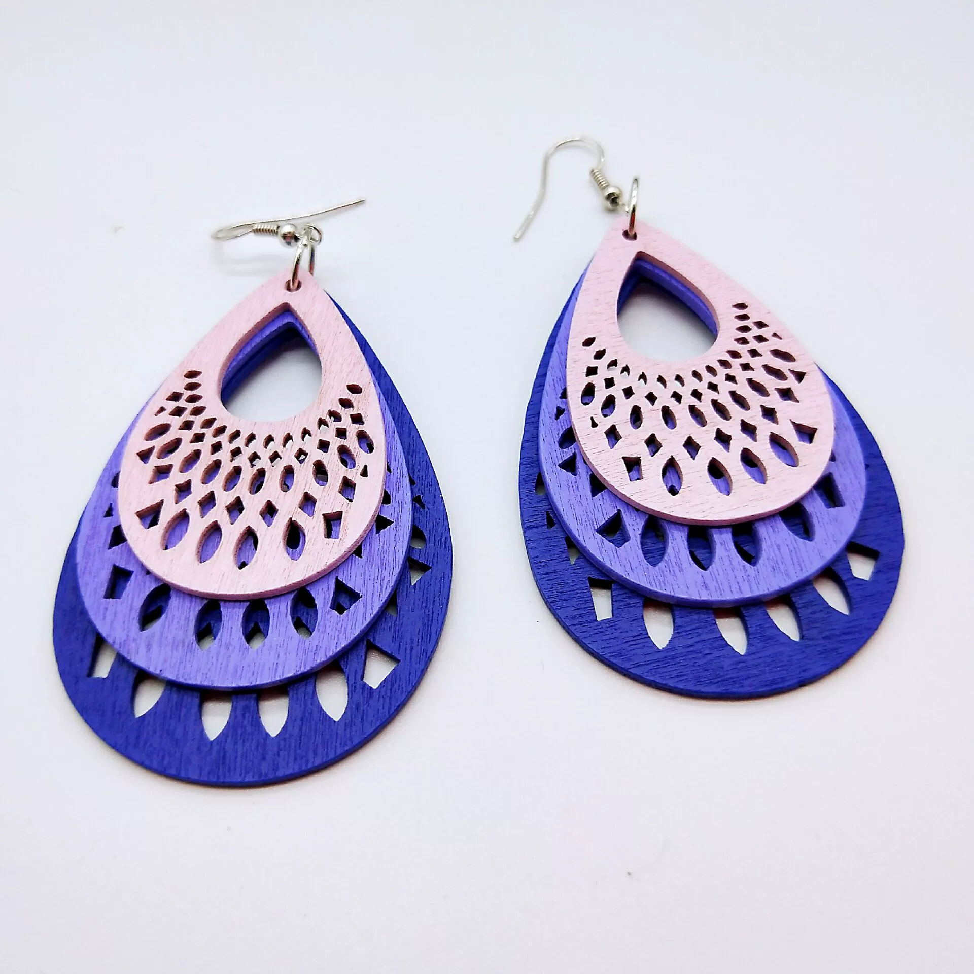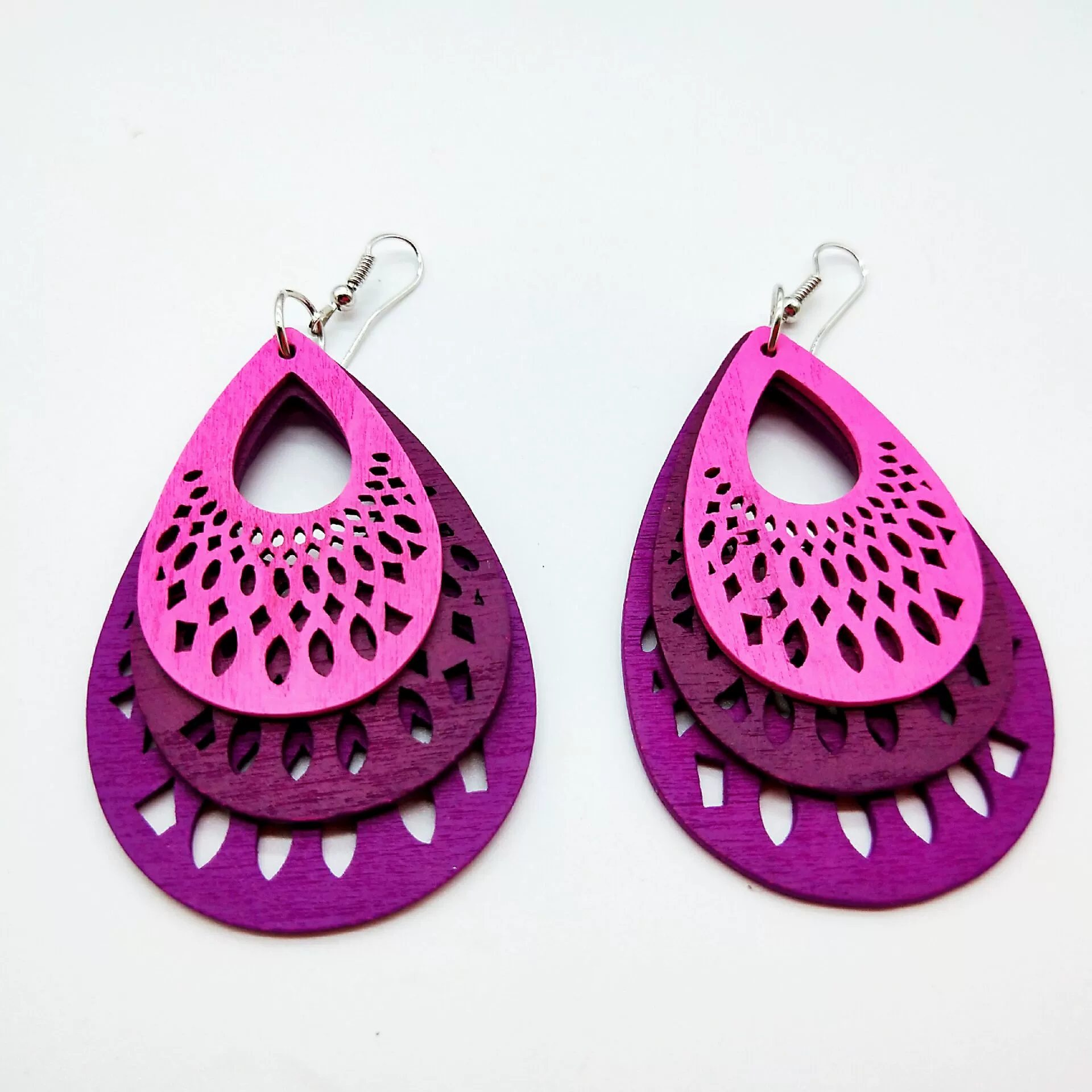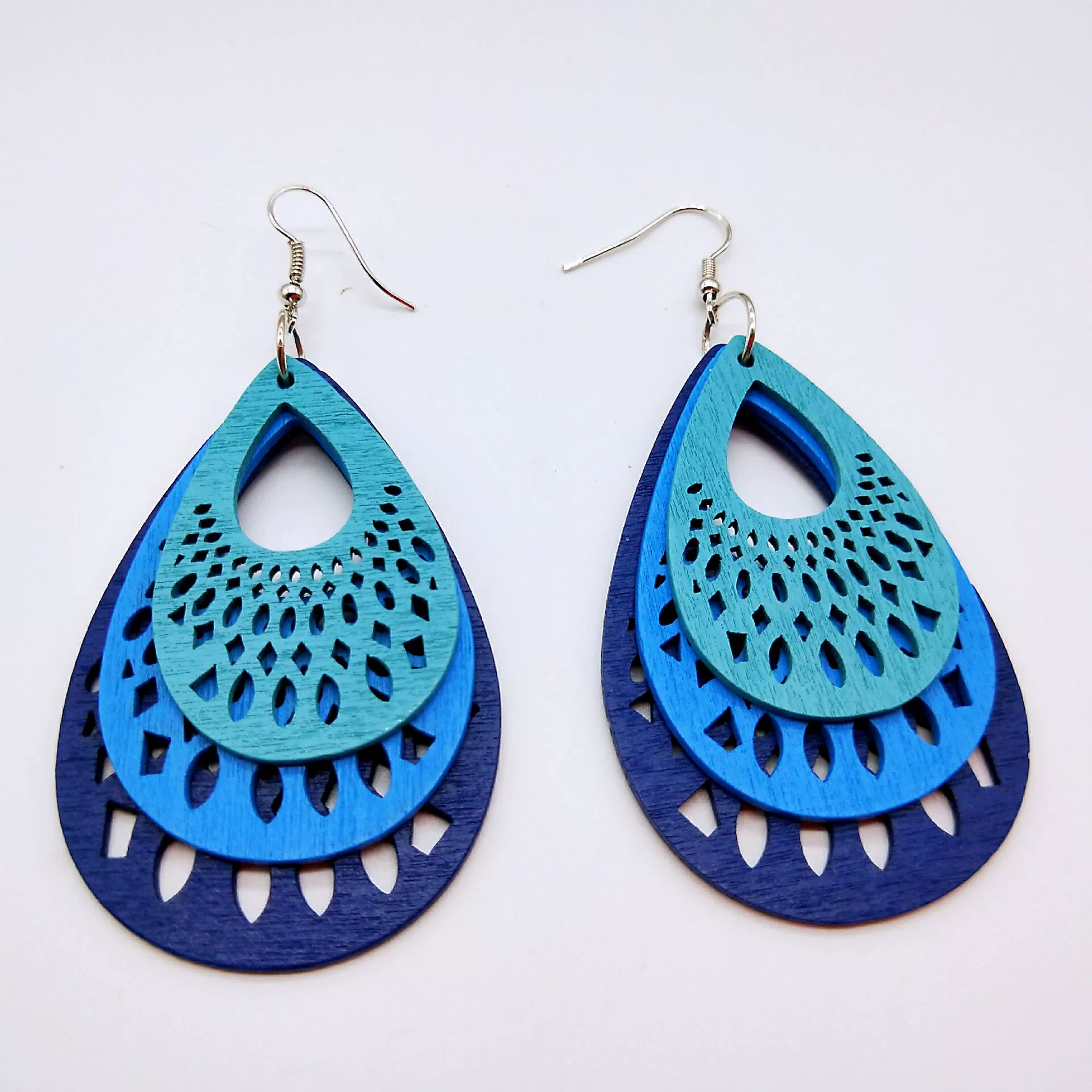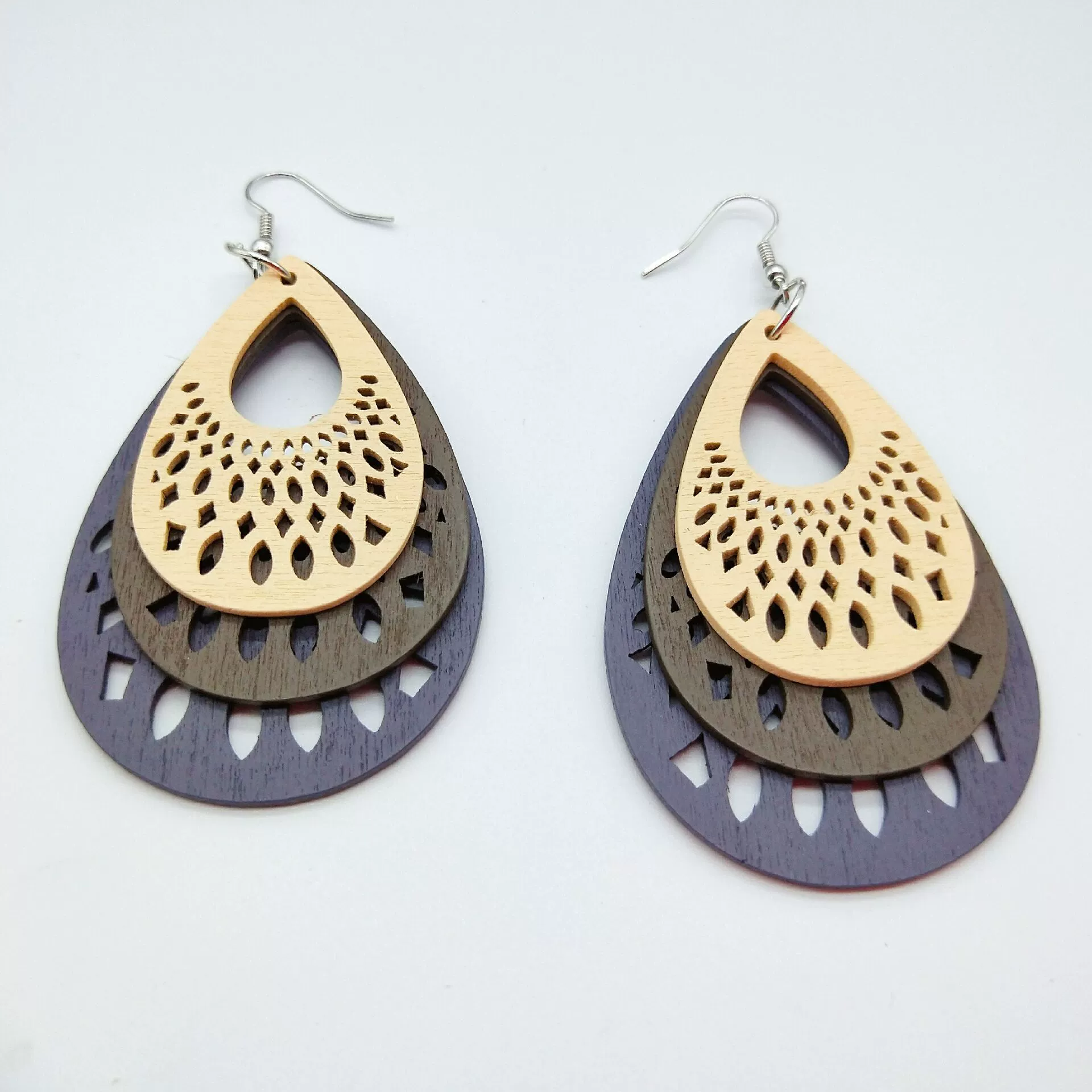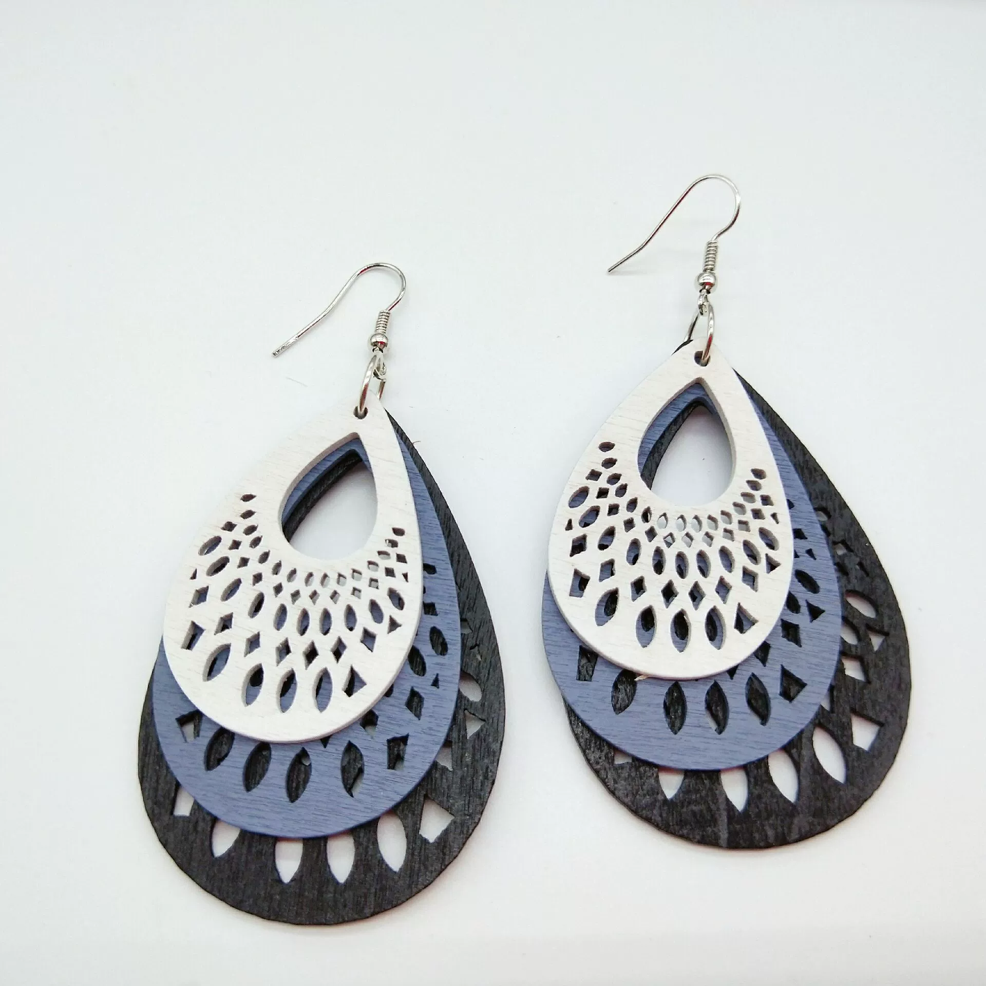 Wooden items Drops of water -shaped 3 -color national style DIY jewelry