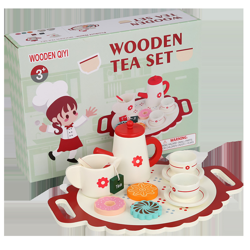Wooden Playhouse Chinese Red Series Tea Set Toys Children's Educational Afternoon Tea Set Parent-Child Interactive Playground