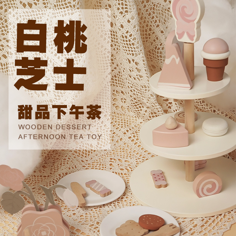 | nameOriginal | Wooden simulation afternoon tea three-layer dessert play house toy children role play tea cup teapot kitchen suit |