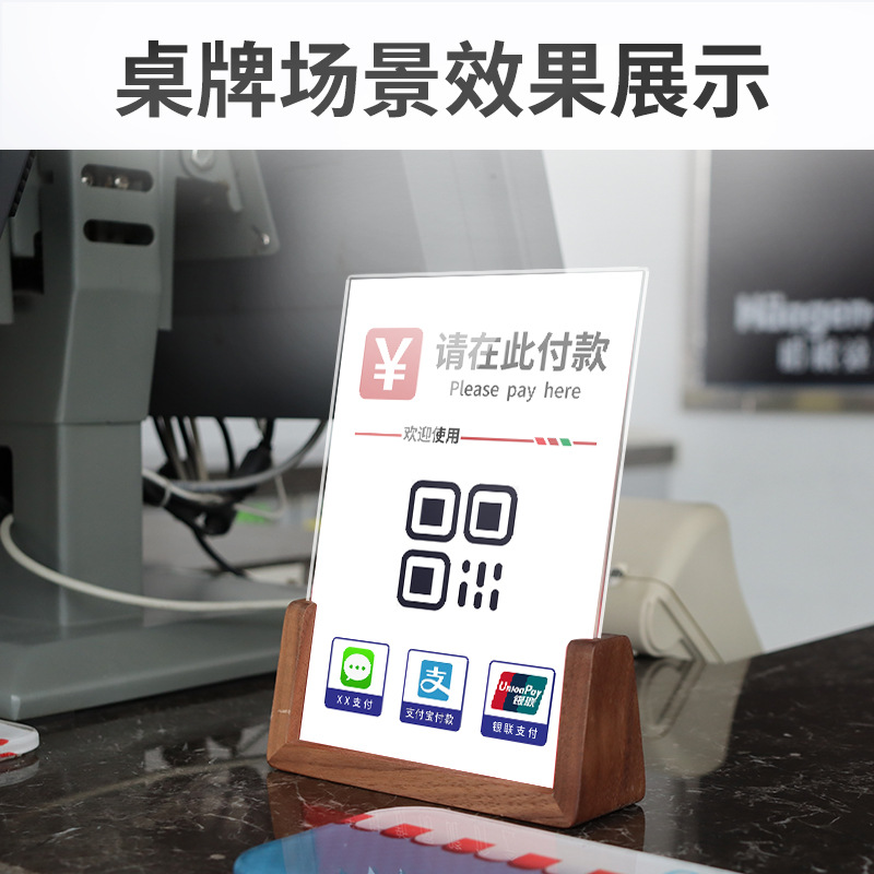 Wooden Table board desktop display stand QR code display card milk tea shop menu price display card dining table stand a4