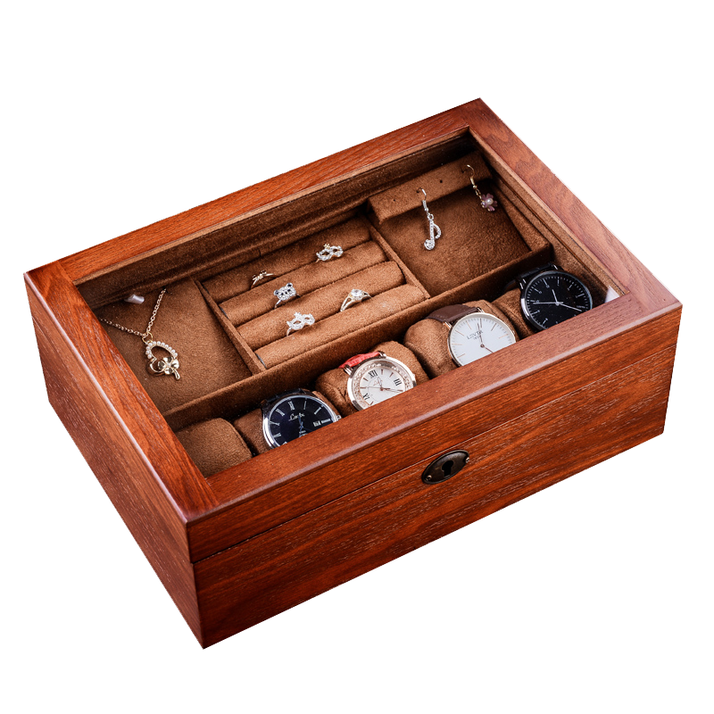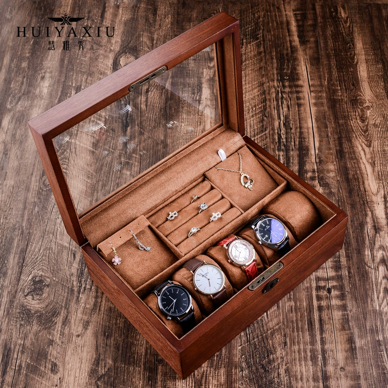 | nameOriginal | Wooden watch jewelry storage box skylight with lock double-layer jewelry rack cufflinks ring necklace home display box |