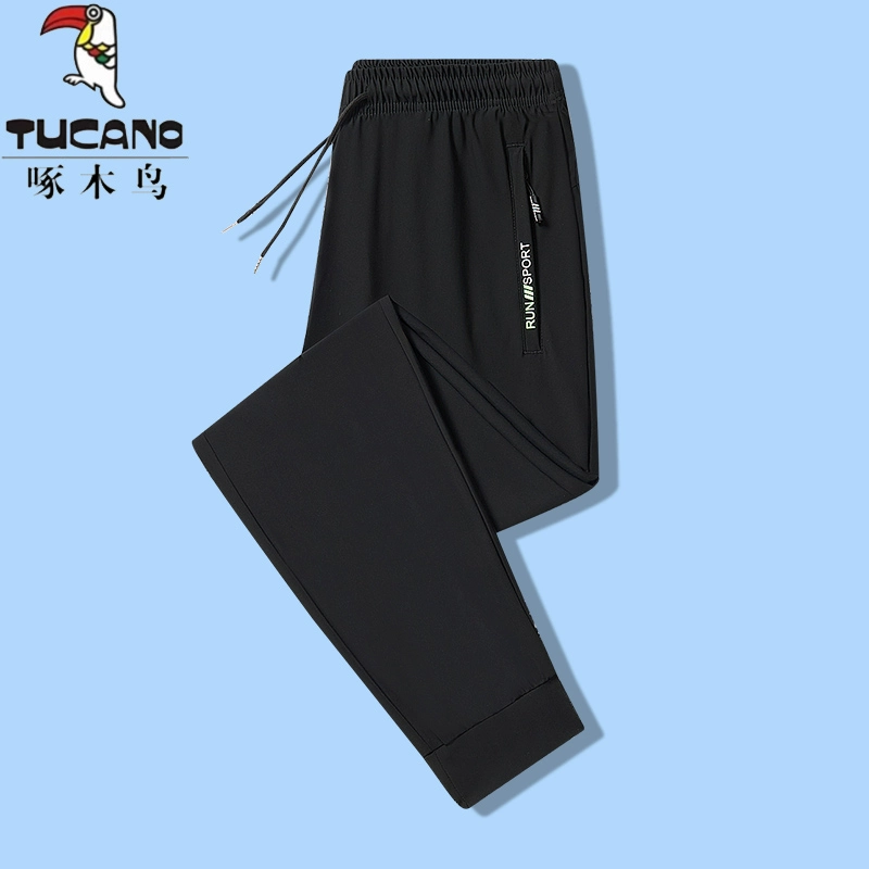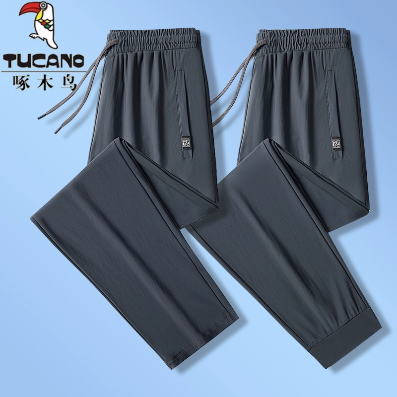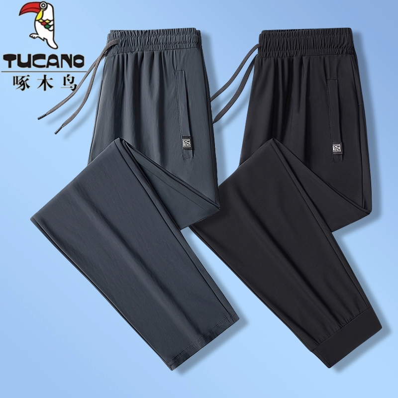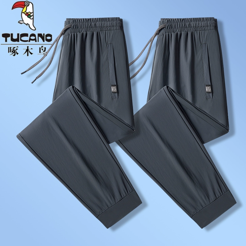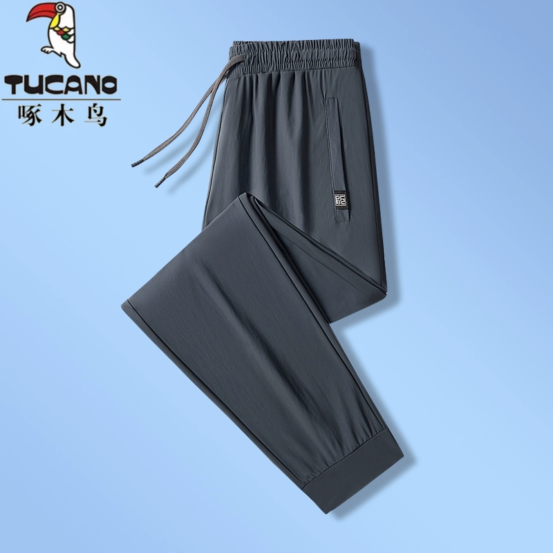 Woodpecker men's quick-drying leg-tie large size ice silk pants