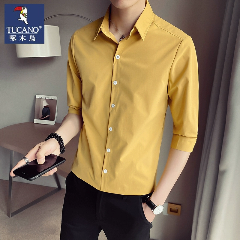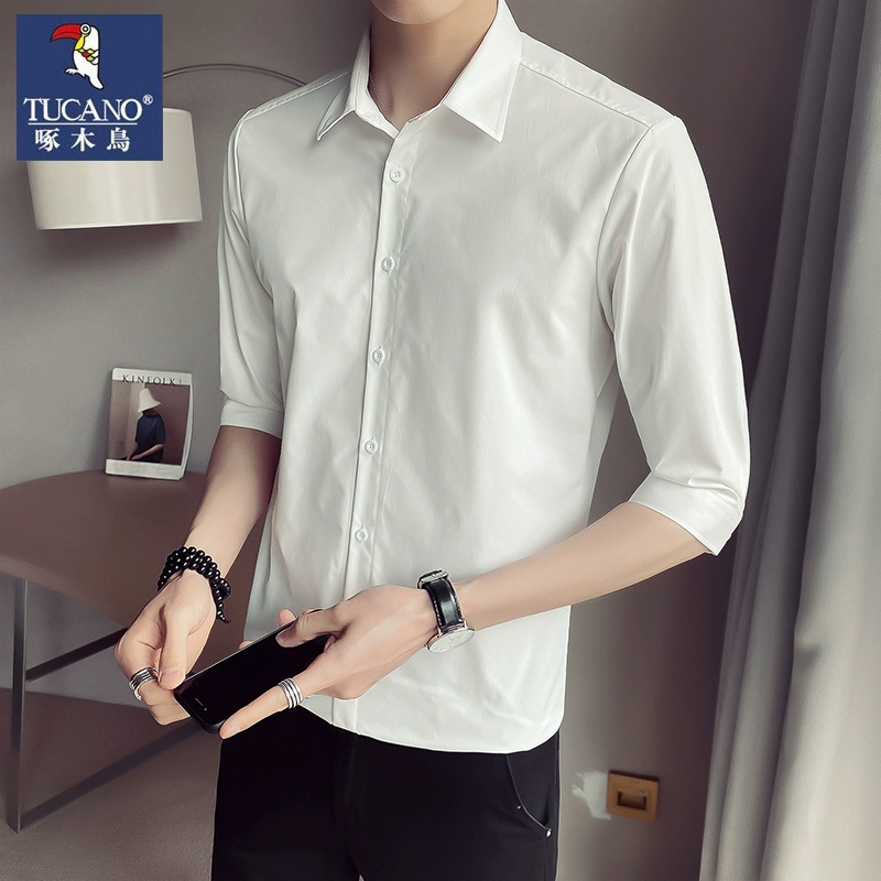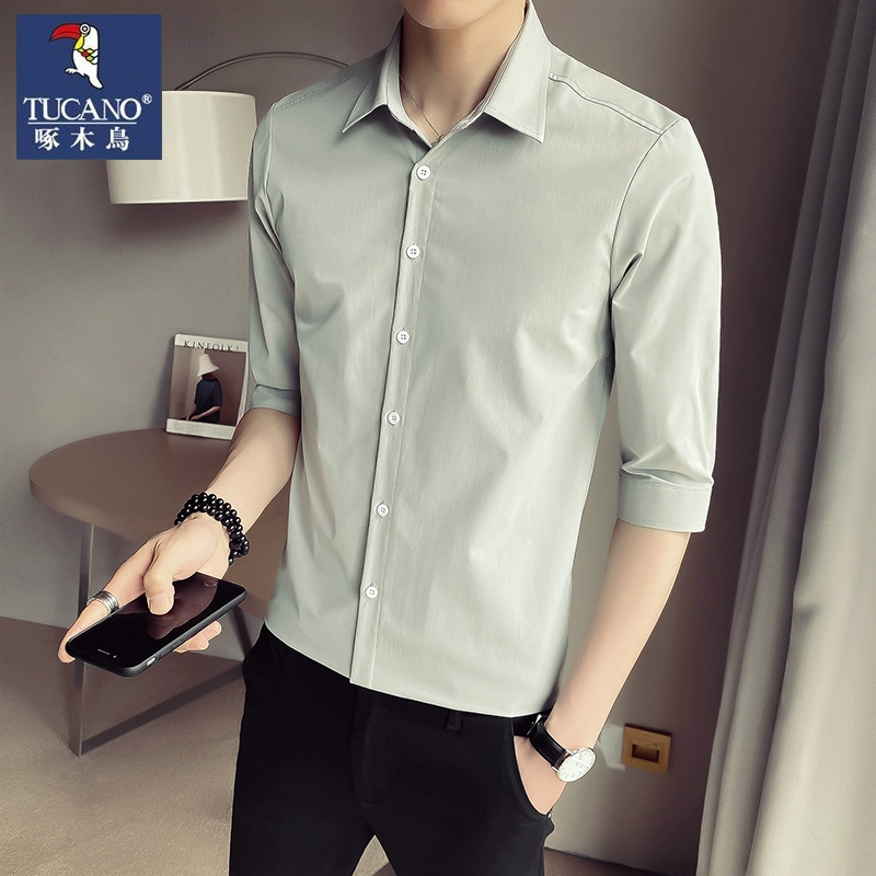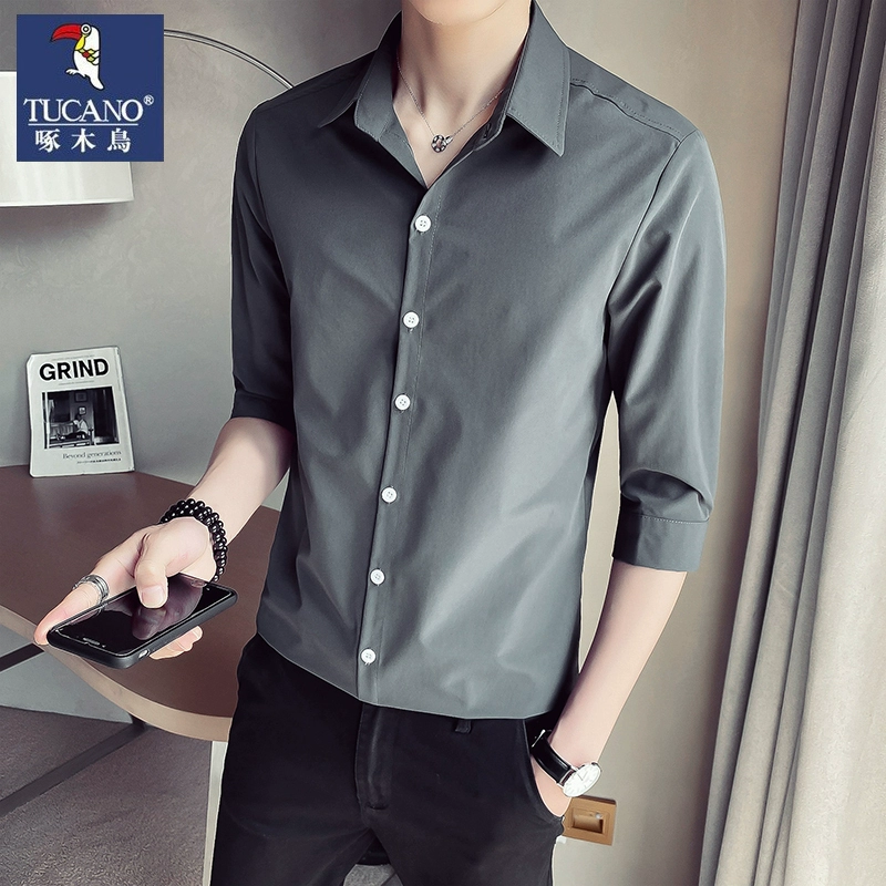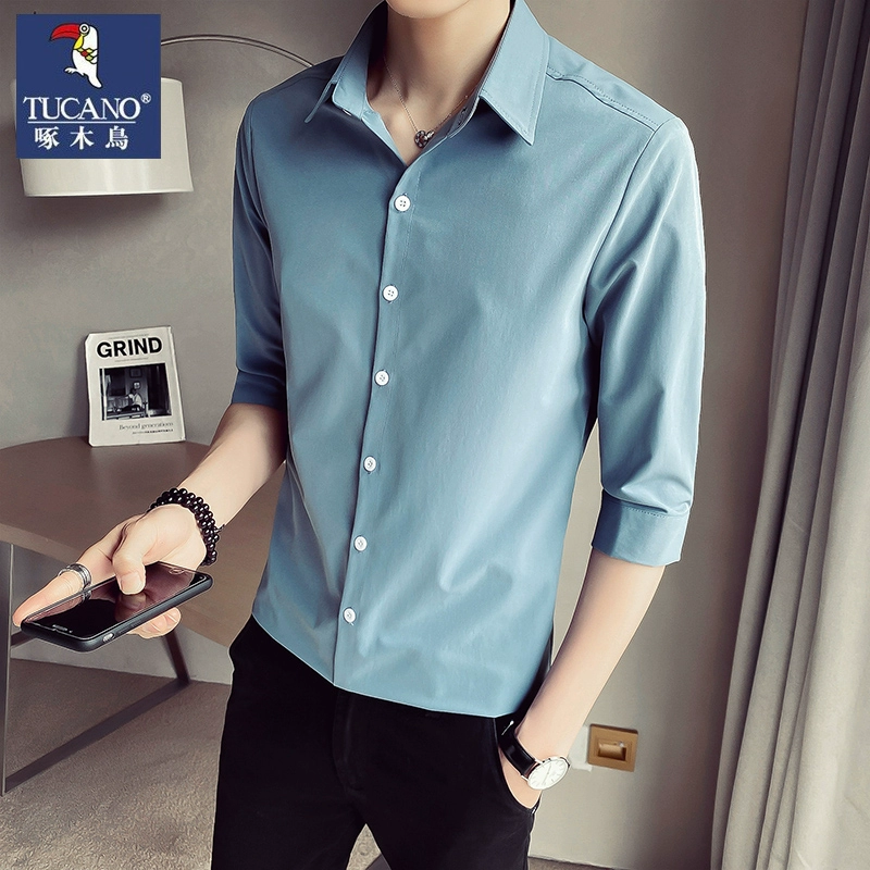 | nameOriginal | Woodpecker three-quarter sleeve ice silk trendy solid color versatile shirt |