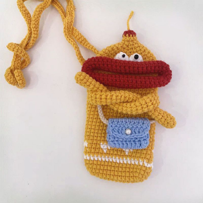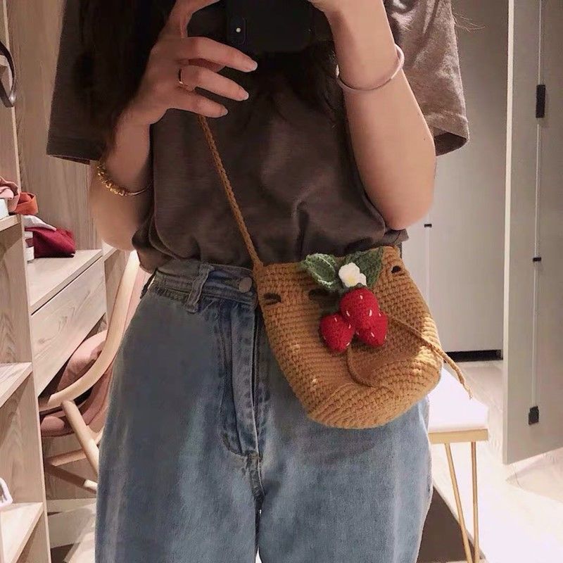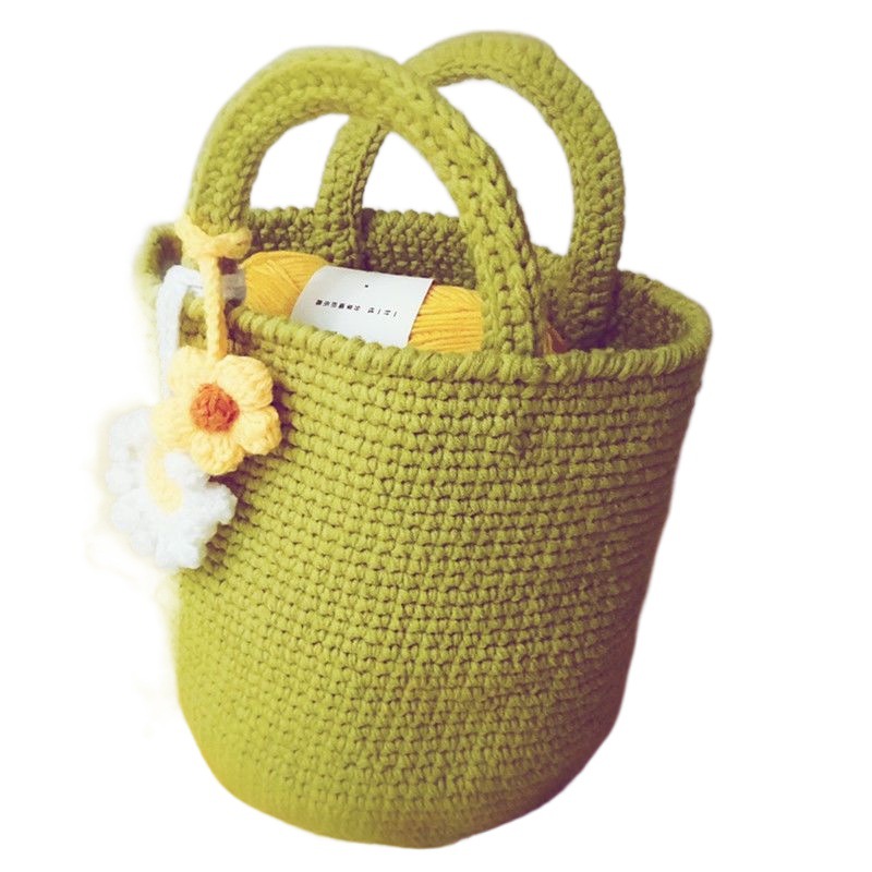Wool Bag Material Bag Hand Knitted Crochet Wool Shoulder Bag Handbag Bucket for Men and Women