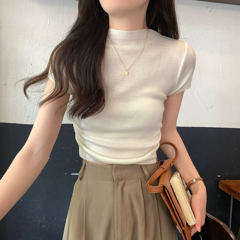 | nameOriginal | Wool slim fit half turtleneck short sleeve pullover top |