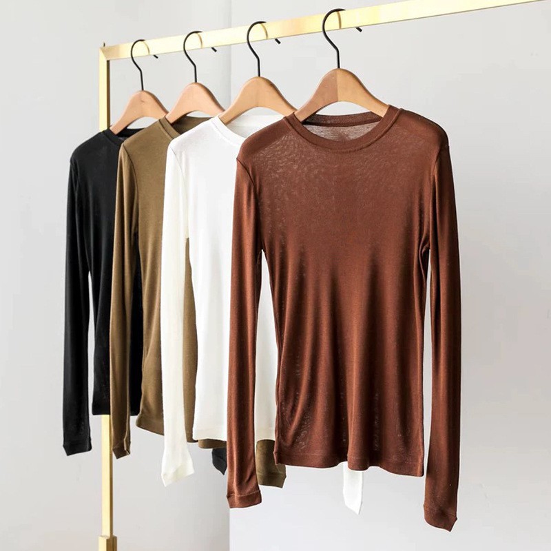 | nameOriginal | Wool Tencel light and slightly transparent round neck large elastic bottoming shirt T-shirt for women |
