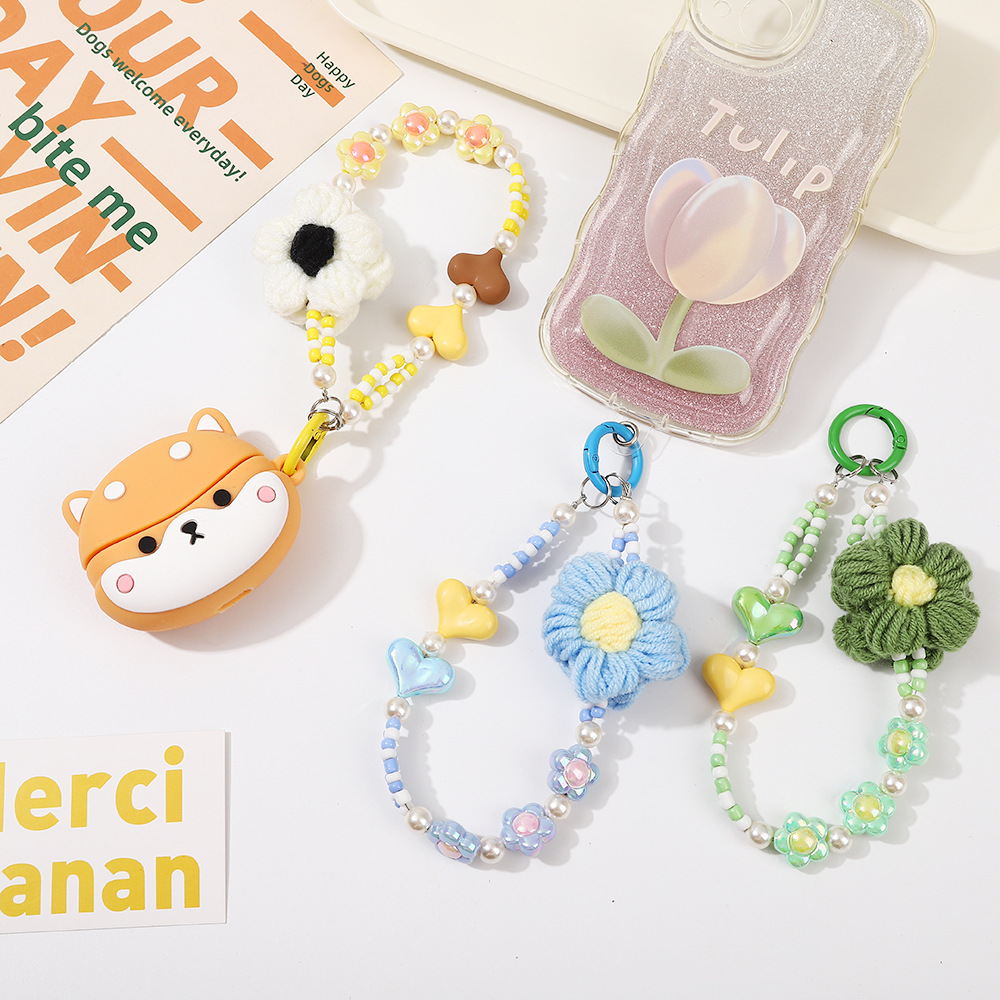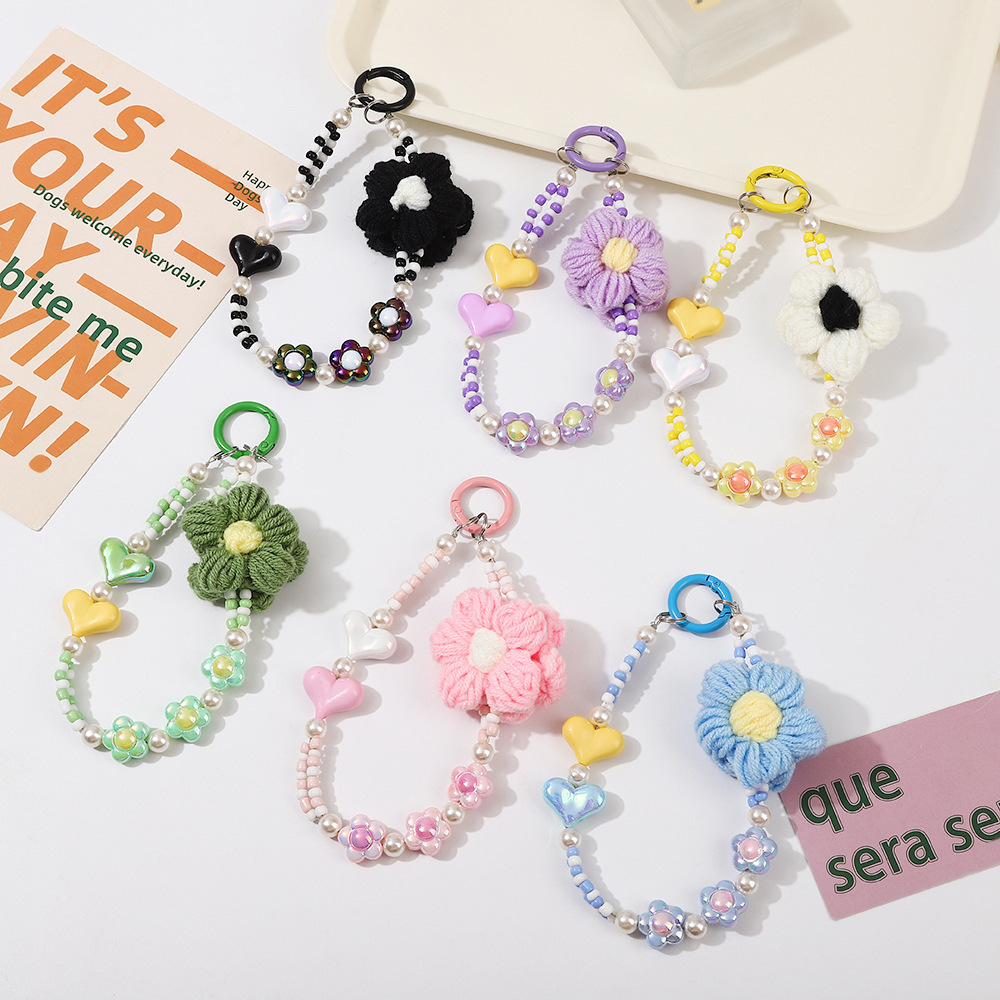 | nameOriginal | Wool woven contrast color flower mobile phone chain handmade beaded mobile phone ornaments keychain bag earphone pendant in stock |