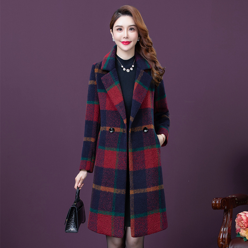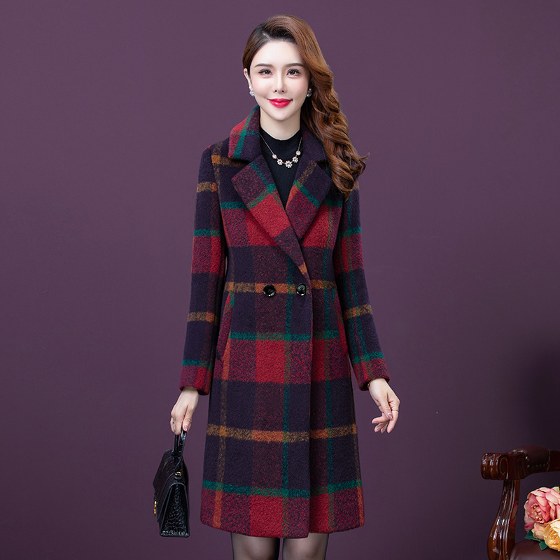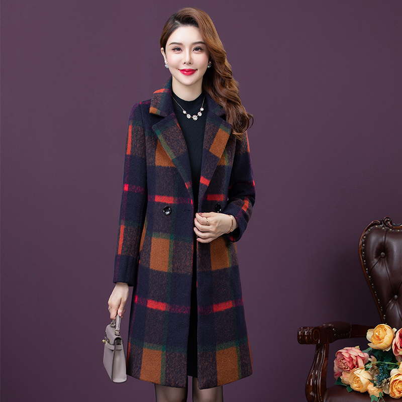 | nameOriginal | Woolen coat for women 2024 autumn and winter New retro plaid mid-length slim slimming elegant woolen coat fashion |