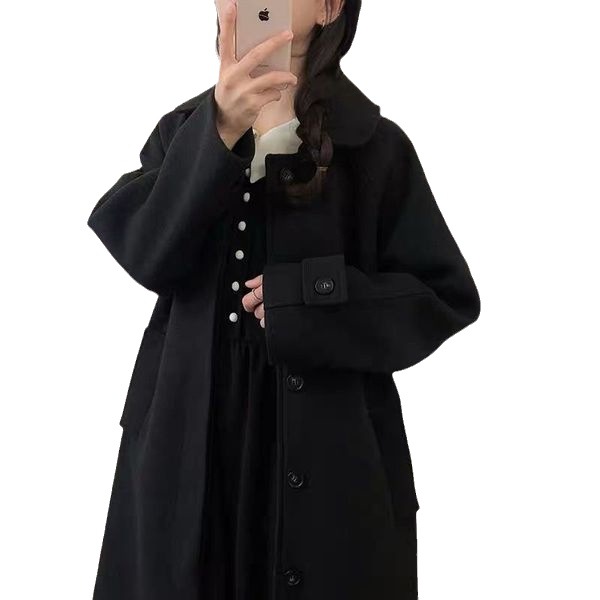 | nameOriginal | Woolen coat for women Hepburn style autumn and winter 2023 new small Korean style high-grade thickened black woolen coat |