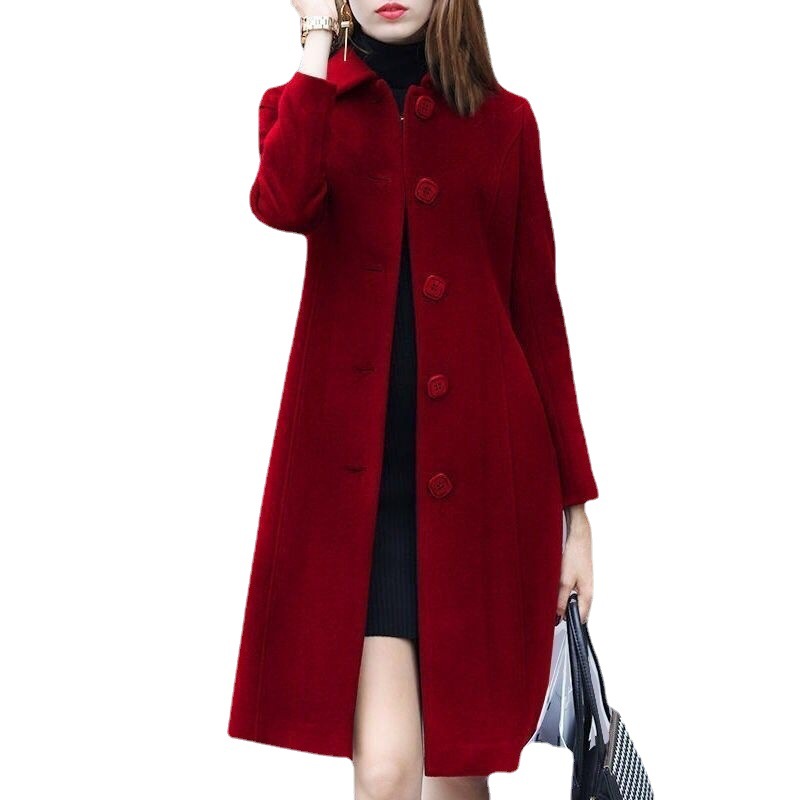 Woolen Coat Women's 2023 Spring New Hepburn Style Large Size Slim-fit Slimming Mid-length Woolen Coat Suit