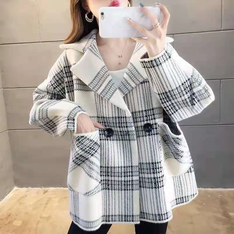 | nameOriginal | Woolen Coat Women's Autumn and Winter New Korean-style Plaid Dress Collar British-style Retro Double-sided Woolen Coat Trendy Cardigan |