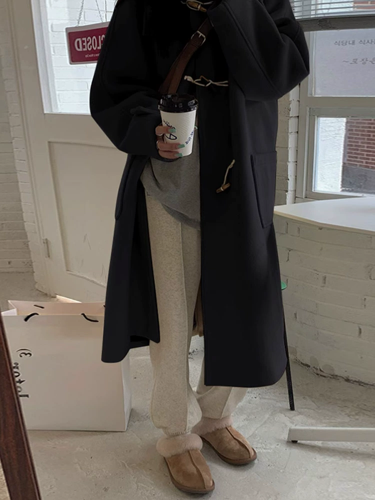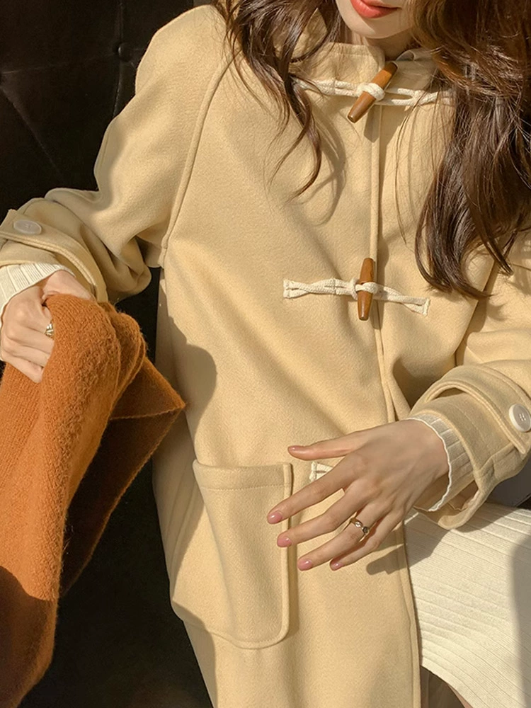 Woolen coat women’s small early autumn horn button woolen coat Korean style coat high-end thickened anti-season windbreaker