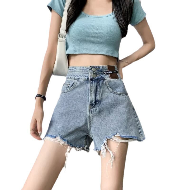 Woolen Denim Shorts Women’s 2024 Summer New High Waist Slimming Thin Wide Leg Pants Loose Casual A- shaped Hot Pants