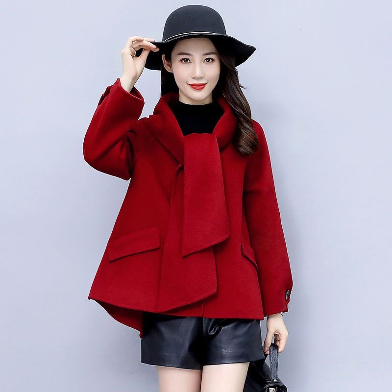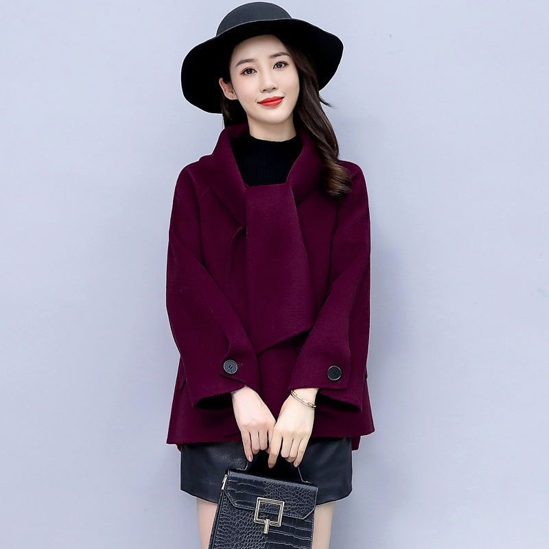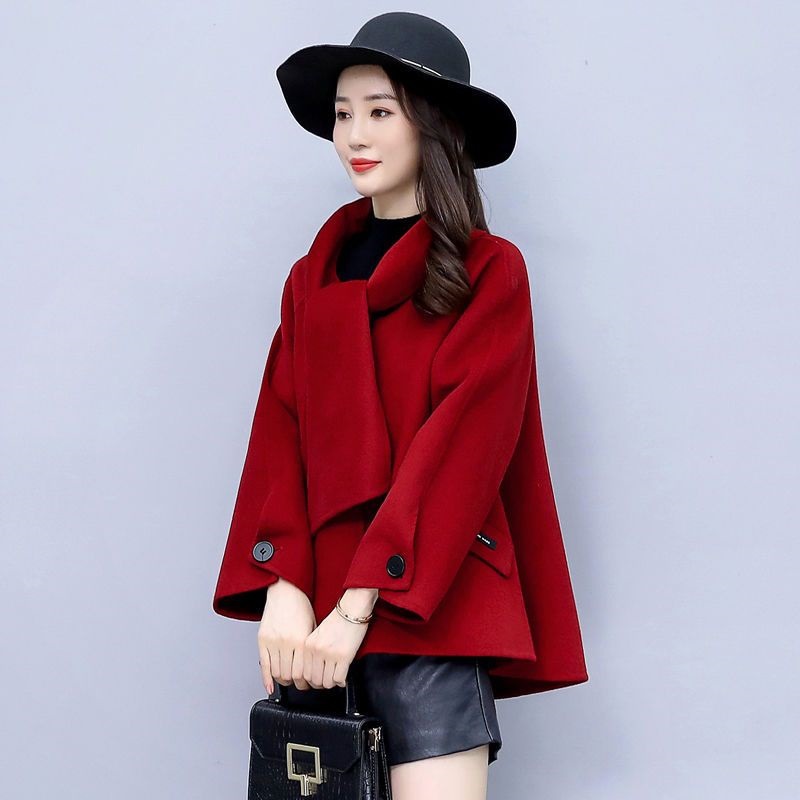 Woolen Shawl Cape Coat Women’s Korean-style Loose Autumn and Winter Elegant Short Woolen Coat Scarf Collar
