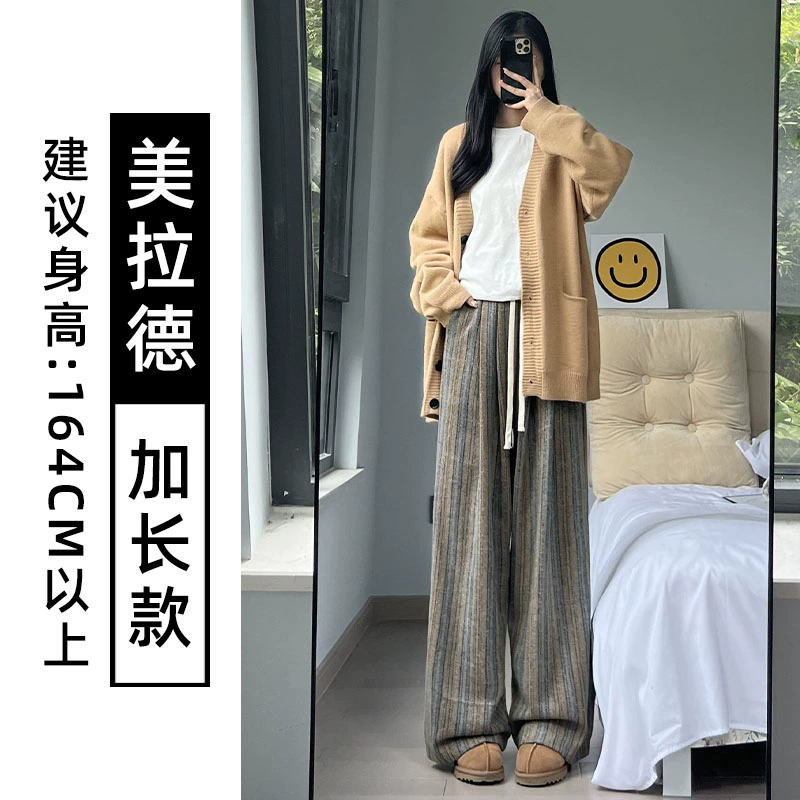 | nameOriginal | Woolen Striped Pants Women's Autumn and Winter 2024 New High Waist Drape Casual Floor-Mopping Maillard Retro Wide Leg Pants |