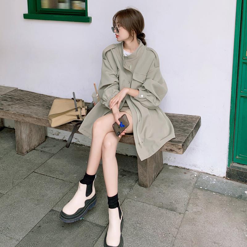| nameOriginal | Workwear coat for women Hong Kong style women 2023 spring and autumn South Korea Internet celebrity mid-length stand collar loose waist-tight casual windbreaker fashion |