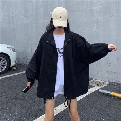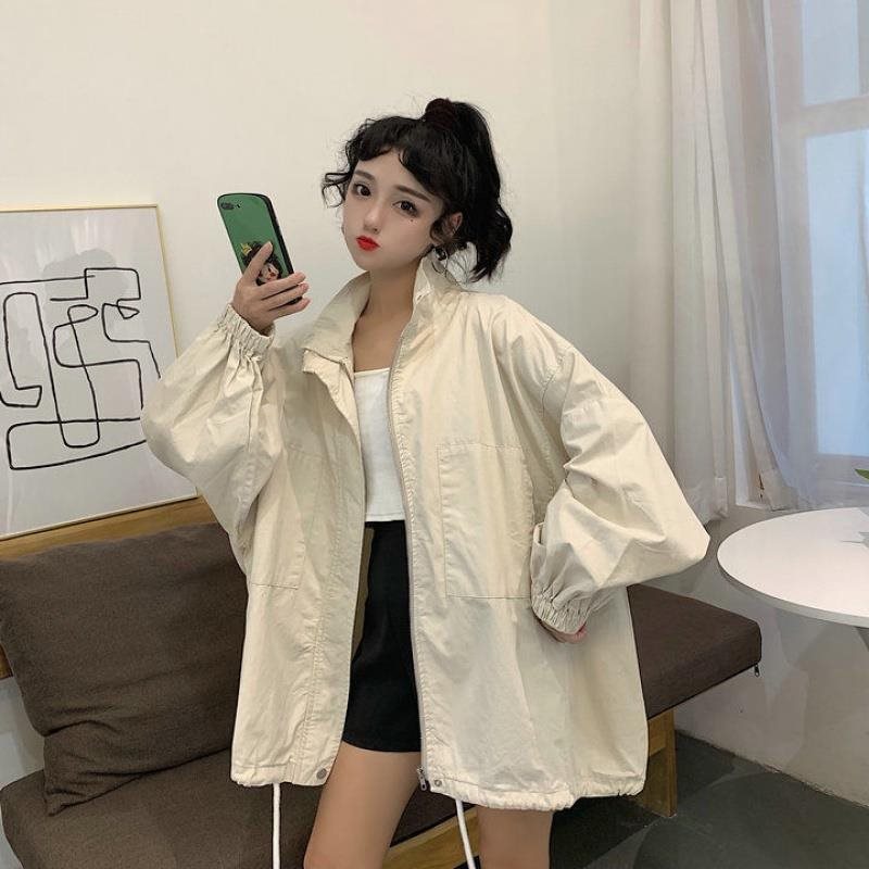 Workwear Coat Women's Autumn Hong Kong Style BF Lazy Style Vertical Collar Top for Students Korean Style Loose Slimming Retro Style Fashionable Clothes