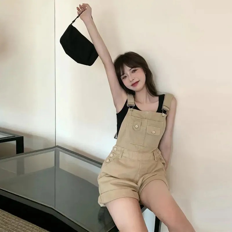 | nameOriginal | Workwear Denim Strap Shorts Women's Summer Korean Style Loose High Waist Slimming Wide Leg Pants Student Strap Jumpsuit Trendy |
