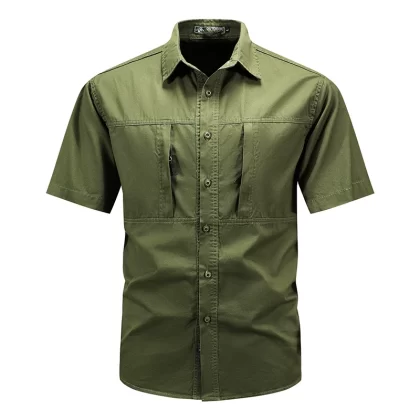 nameOriginal | Workwear lapel casual double pocket army fan shirt short sleeves |