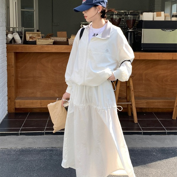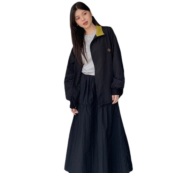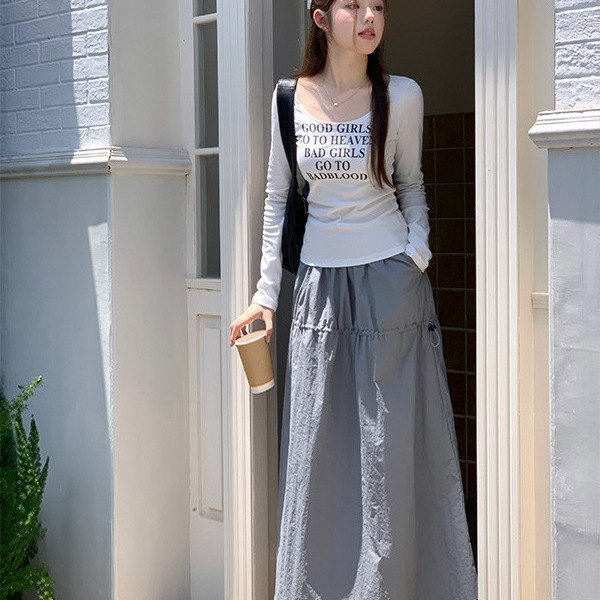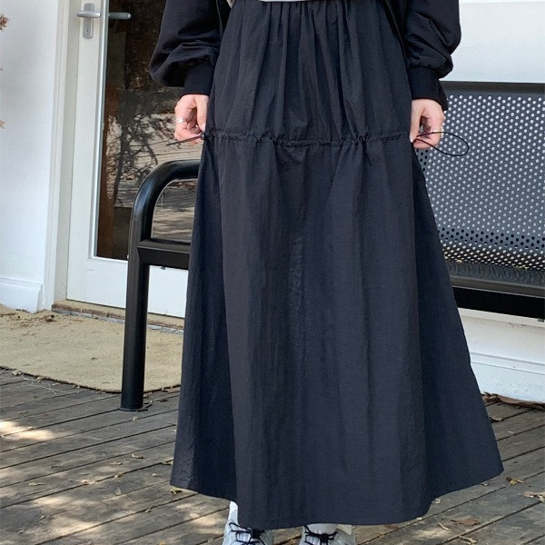 Workwear overskirt spring 2024 Korean version of high waist draped drawstring skirt casual A- line skirt long skirt large swing skirt
