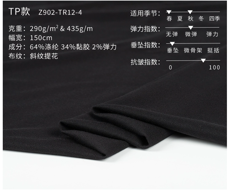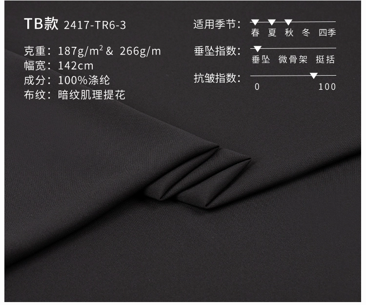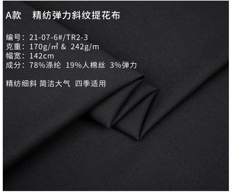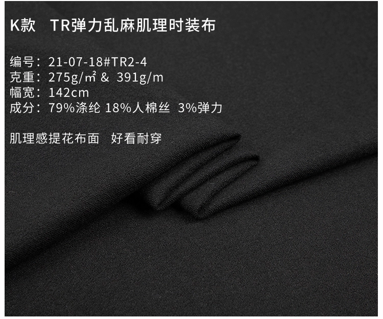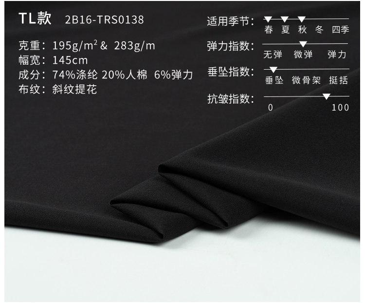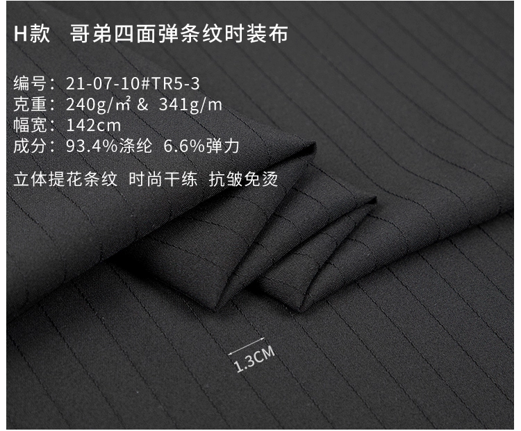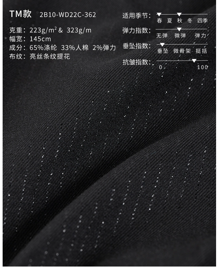Worsted suit fabric, black high-end windbreaker fabric, spring and summer polyester fiber stretch pants, business wear jacquard fabric
