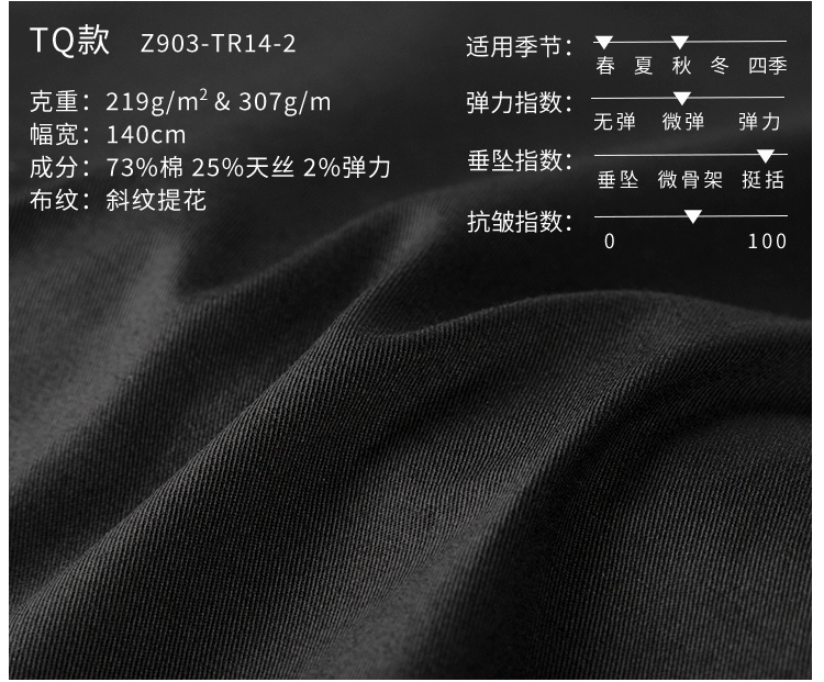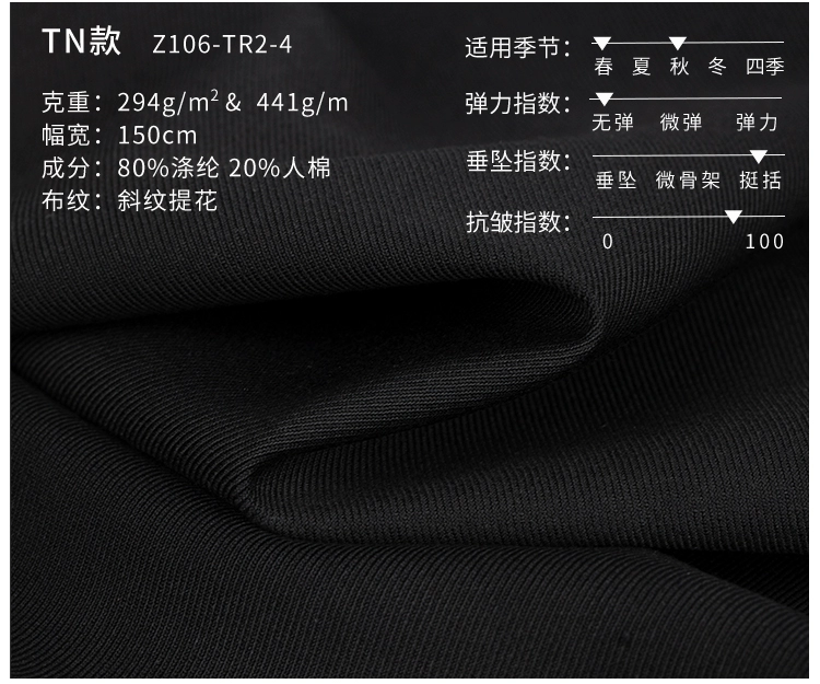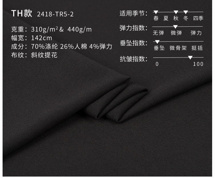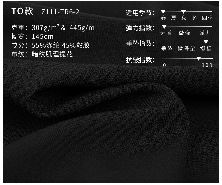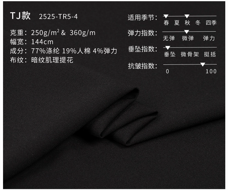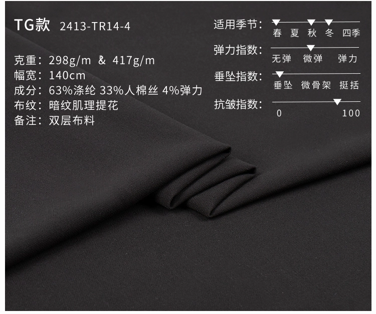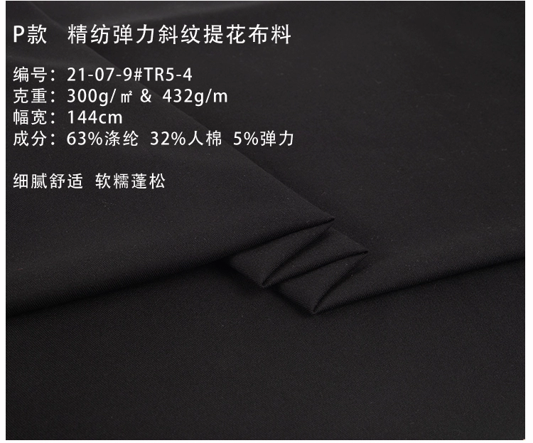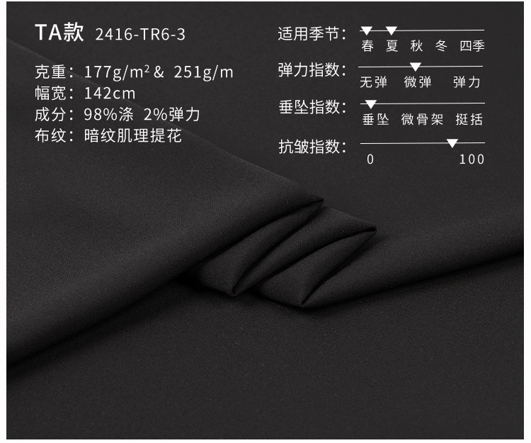 Worsted suit fabric, black high-end windbreaker fabric, spring and summer polyester fiber stretch pants, business wear jacquard fabric