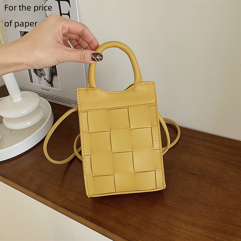 Woven Mobile Phone Bag Women's 2023 Spring and Summer New Arrival Portable Small Square Bag Korean Style Distinctive Shoulder Crossbody Bag Women's Cross-Border Bag