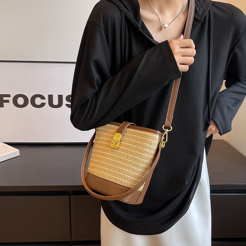 | nameOriginal | Woven Straw Bag Women's 2024 New Niche Design Crossbody Bag Thailand All-match High-end Portable Bucket Bag |