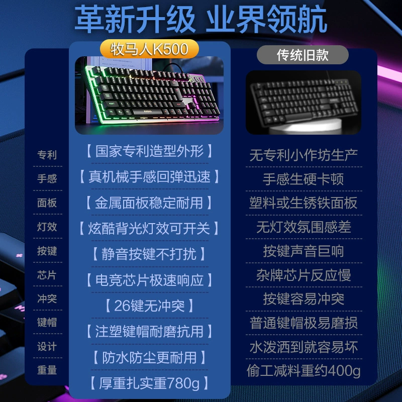 | nameOriginal | Wrangler mechanical feel keyboard and mouse set wired and wireless computer game e-sports keyboard and mouse headset three-piece set |