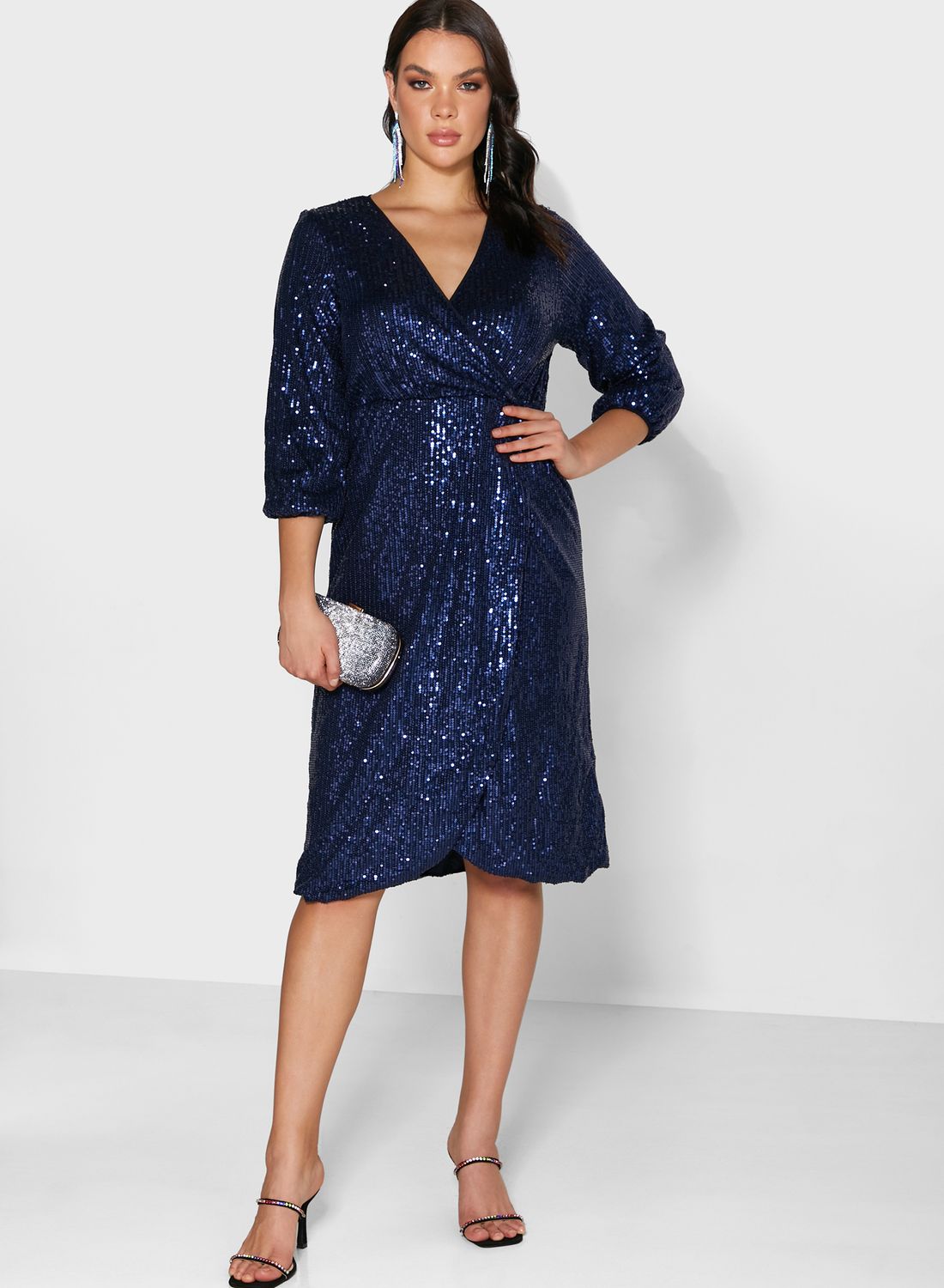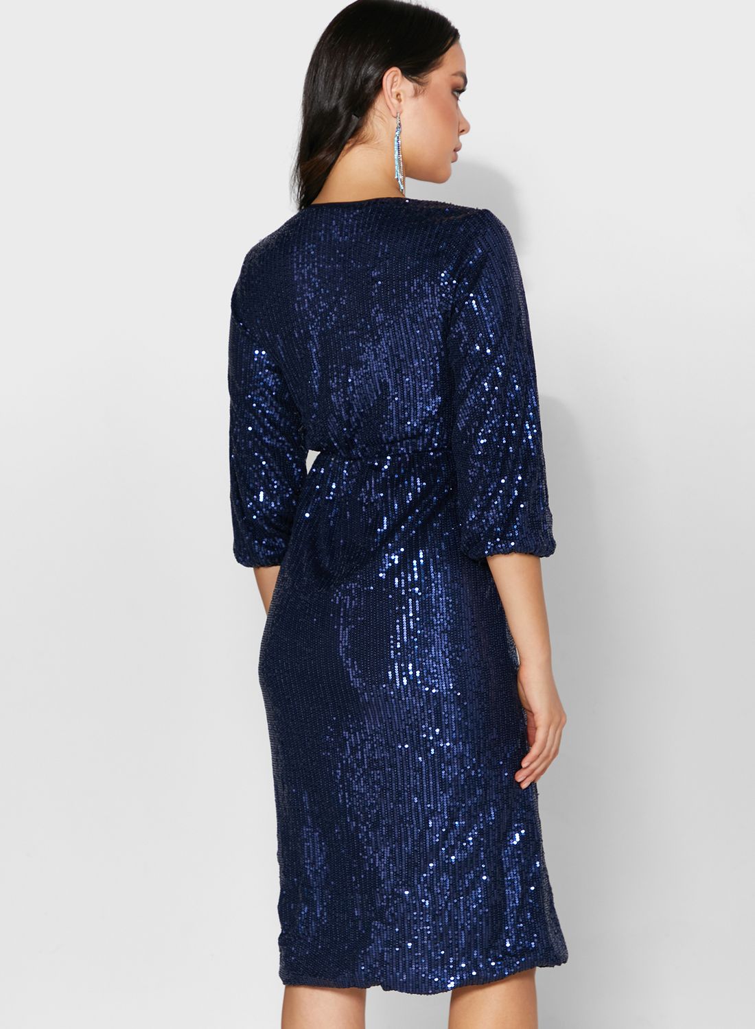 The Sequin Detail Wrap Dress is the perfect addition to your wardrobe for any special occasion. This stunning dress features a flattering wrap design that cinches at the waist to accentuate your curves. The dress is adorned with intricate sequin detailing that adds a touch of glamour and sparkle to your look. The long sleeves and midi length make it a versatile piece that can be dressed up or down depending on the occasion. Made from high-quality materials, this dress is comfortable to wear and will make you feel confident and stylish. Whether you’re attending a wedding, a cocktail party, or a formal event, the Sequin Detail Wrap Dress is sure to turn heads and make you feel like a star.