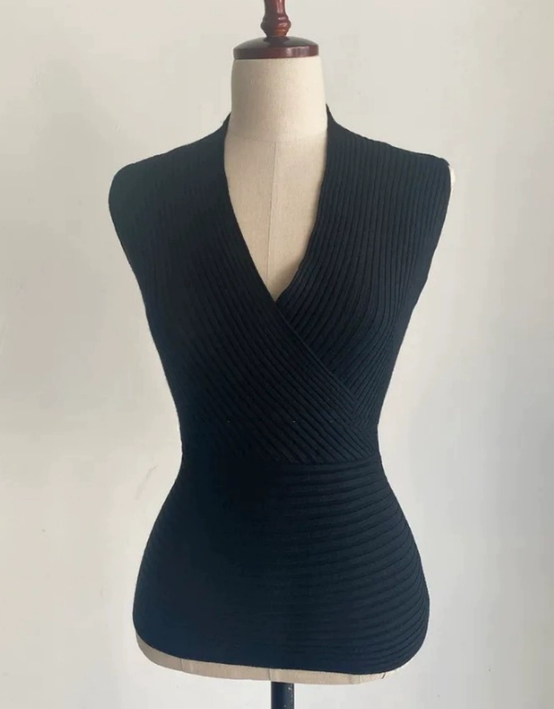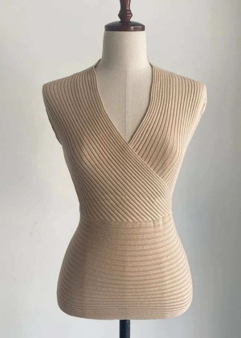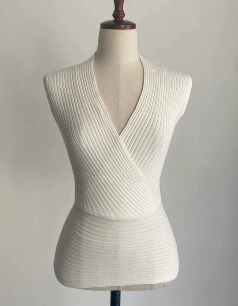 | nameOriginal | Wrapped V-neck feminine knitted vest that shows big breasts |