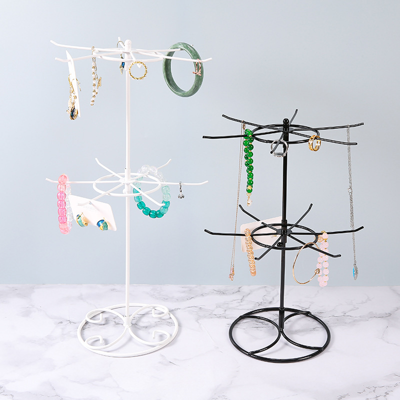 Wrought Iron Two-Layer Rotating Rack Necklace Bracelet Jewelry Lipstick Display Stand Jewelry Stand Cosmetic Display Stand Creative